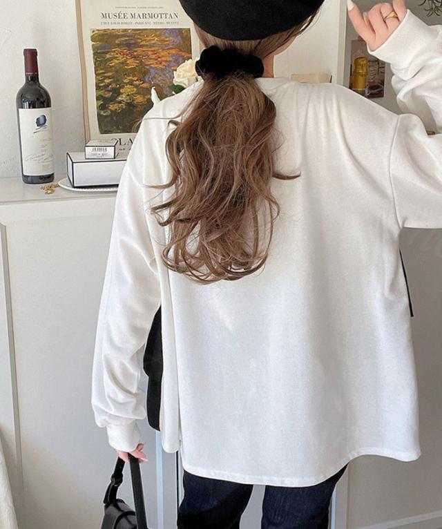 白の無地は何にでも合わせやすく、きれいめスタイルを演出してくれます。