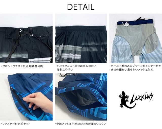 LARKINS ラーキンス 水着 メンズ サーフパンツ トランクス 海パン 海水パンツ 短パン ショートパンツ ハーフパンツ マリンスポーツ インナー付き ジッパーポケット