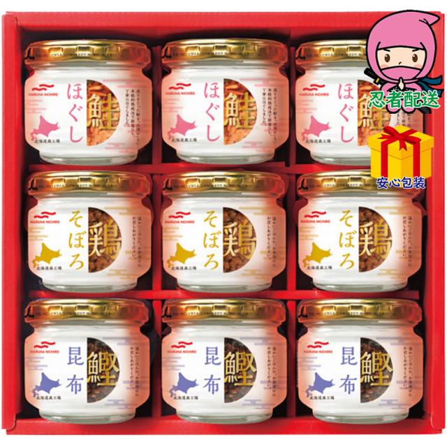 「さけ」、「鶏」、「鰹昆布」の3種類の瓶詰を詰め合わせた瓶詰のバラエティセットです。