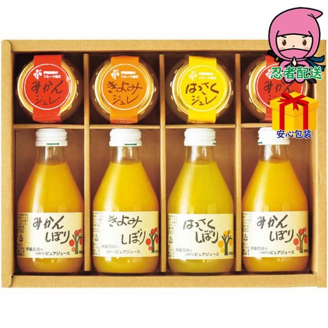 ●100%ピュアジュース(みかん180ml)×2・(きよみ・はっさく各180ml)×各1・ピュアフルーツ寒天ジュレ(みかん90g)×2・(きよみ・はっさく各90g)×各1