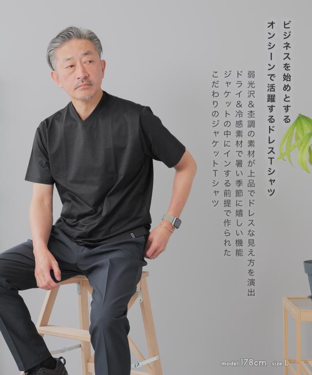 ビジネスをはじめとするオンシーンで活躍する活躍するドレスTシャツ。弱光沢&杢調の素材が上品できれいめ、接触冷感、吸水速乾の嬉しい機能付きの春夏におすすめのジャケットTシャツ