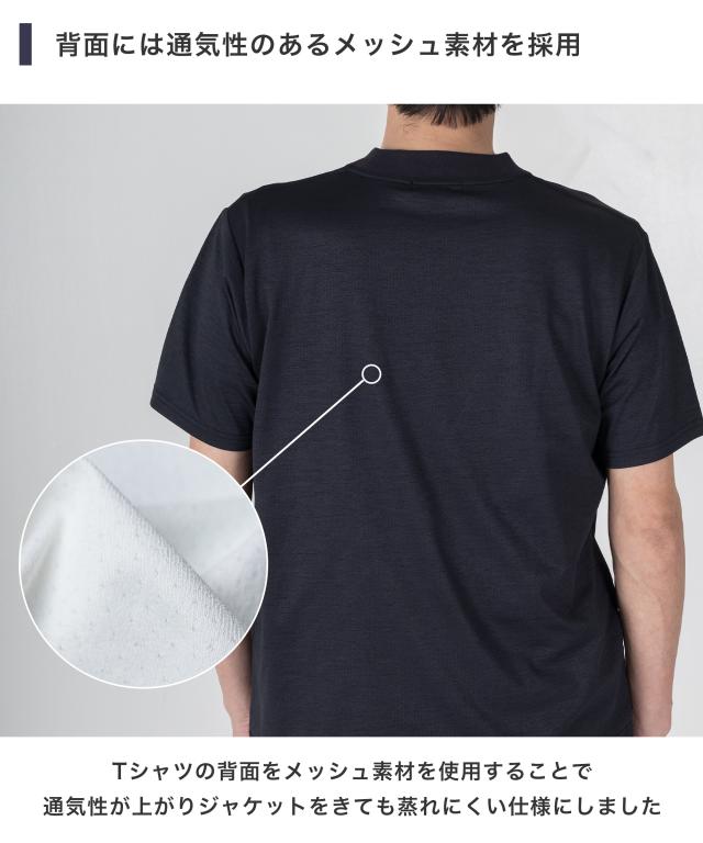 Tシャツ メンズ 半袖 ジャケットTシャツ ジャケットTシャツ モックネック 春 夏 セットアップ 専用 ジャケットインナー ティーシャツ 接触冷感 涼しい 吸水速乾 背面メッシュ きれいめ ホワイト 白 ネイビー グレー AWC ビジネス カジュアル クールビズ 20代 30代 40代 50代