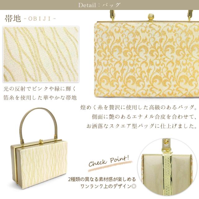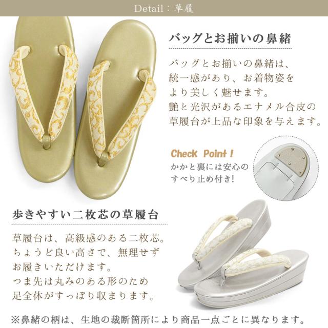 振袖・袴・色留袖等、幅広いフォーマルシーンにお使いいただける草履バッグセットでございます。
