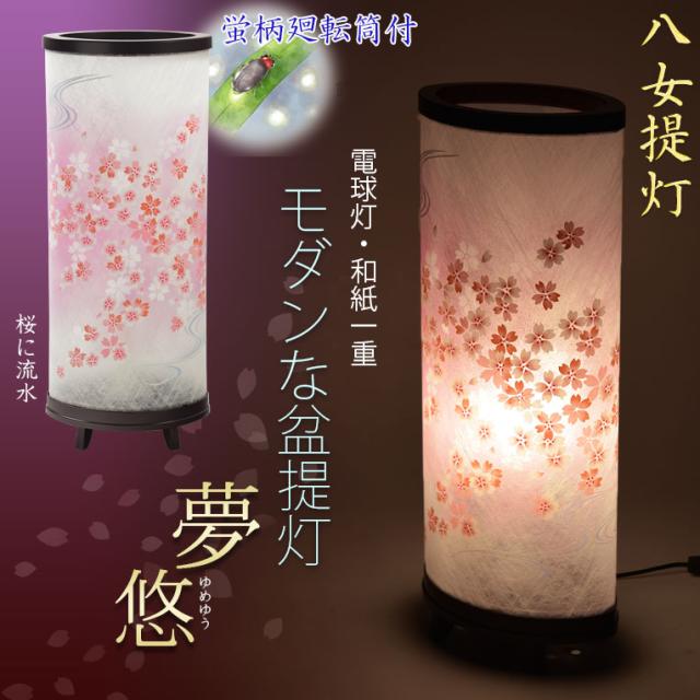 お盆提灯【桜舞う高級インテリア盆提灯:夢悠(ゆめゆう)廻転筒入り・電球灯 1号】お盆用品 お盆飾り 霊前灯 仏壇用仏具 新盆 初盆 盆花 迎え火 送り火