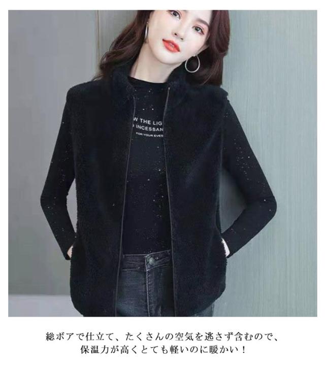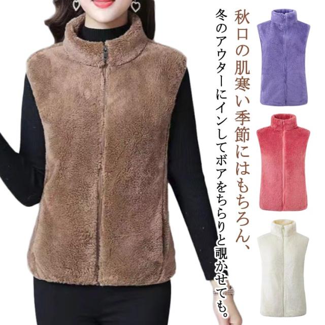 部屋着 フリースベスト フリース 前開き ボアベスト もこもこ ボアベスト ベスト アウター ジレ ノースリーブ 袖なし 厚手 スタンドカラー 立ち襟 ルームウェア 秋冬 防寒着 アウトドア 大きいサイズ 重ね着