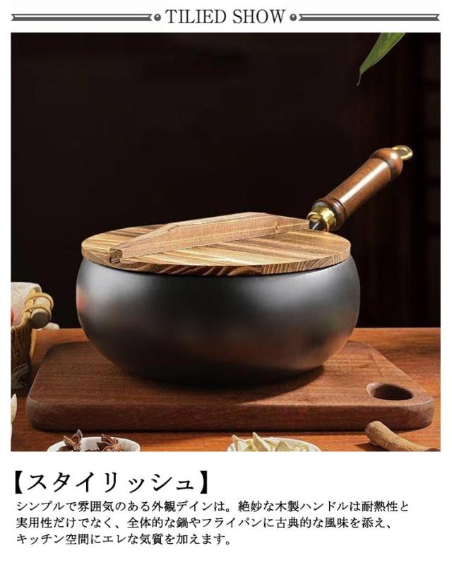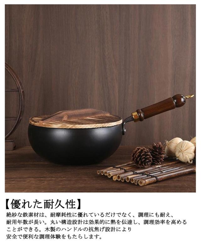 | 鉄フライパンで健康生活!中華鍋。木製蓋とガラス蓋をお選びいただけます。 【健康と環境保護】鉄製で化学コーティングを使用していないため、調理中に害物質が発生せず、消費者にで安全な調理体験をします。繰り返しハンマー加工。現代技術を融合させ 家庭料理により自然で栄養価の高い選択肢をもたらします。 【優れた耐久性】絶妙な鉄素材は、耐摩耗性に優れているだけでなく、調理にも耐え、耐用年数が長い。丸い構造設計は効果的に熱を伝達し、調理効率を高めることができる。木製のハンドルの抗焦げ設計により 安全で便利な調理体験をもたらします。 【多機能クッキング】1日3食の様々な調理ニーズに簡単に対応できる。よく設計された内部構造は食材の置き場所や取り出しが簡単で、スープ、炒め物、煮込み料理など、調理性能を発揮します。 【スタイリッシュ】シンプルで雰囲気のある外観デインは。絶妙な木製ハンドルは耐熱性と実用性だけでなく、全体的な鍋やフライパンに古典的な風味を添え、キッチン空間にエレな気質を加えます。 | |