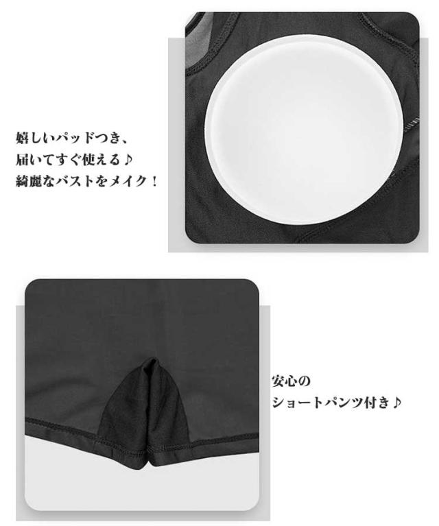 | シンプルstyleのワンピ水着!体型カバーもできてうれしい☆ フレアスカートが気になるヒップ~太もも周りをしっかりカバーしてくれる◎ ウエストの透けるデザインで露出を抑えながらセクシーさもGET? 嬉しいパッドつき、届いてすぐ使える♪綺麗なバストをメイク! 安心のショートパンツ付き♪ ストレスフリーで快適の1着です。 | |