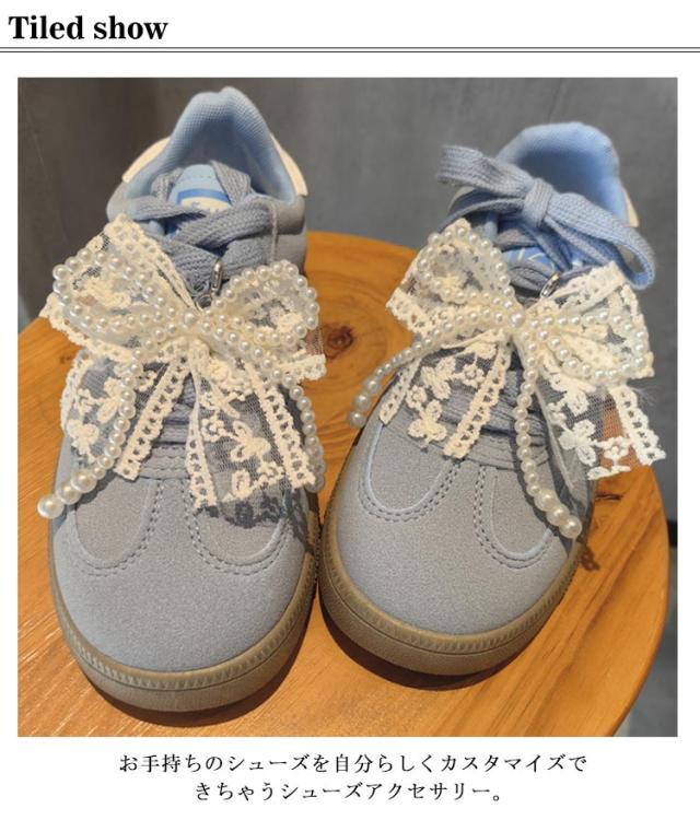 シューチャーム スニーカーアクセサリー シューズアクセサリー リボン シューピアス 韓国風 靴 レース シューズピアス 女性 2個セット 靴ひも スニーカーデコ シューパーツ レディース 2個セット リボン バレエコア ガーリー
