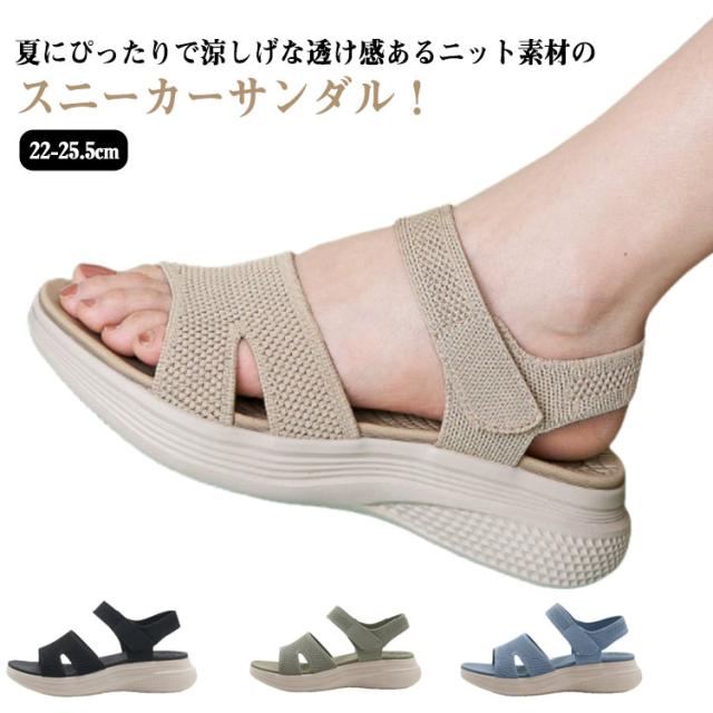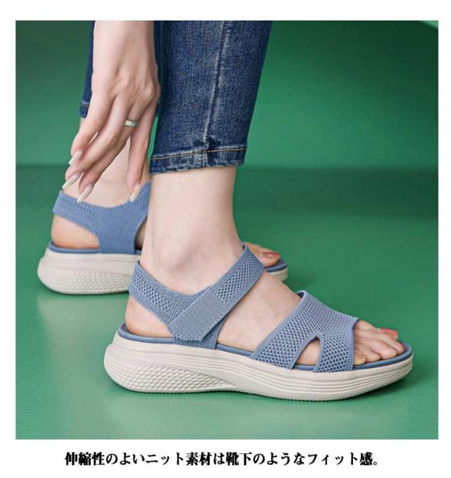 サンダル コンフォート 5センチヒール スポーツサンダル ニットサンダル 春 スポサン 軽量 厚底 カジュアル 疲れない ニットサンダル 歩きやすい 夏 厚底サンダル スニーカーサンダル ニット ストレッチ 伸縮性 普段使い 脚長