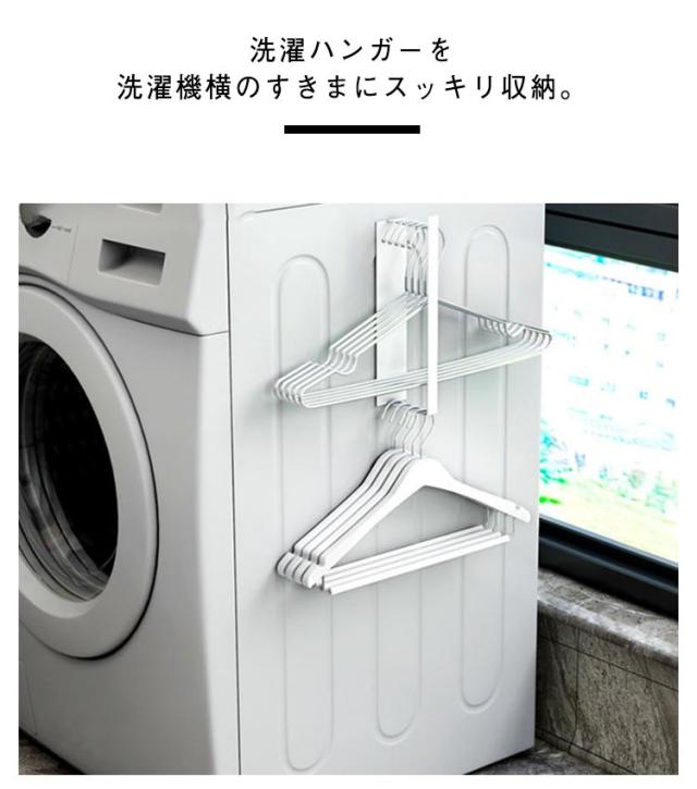 | で洗濯機横に簡単取付!タオルやハンガー収納に便利グッズ。 干す場所に困るバスタオルやバスマットなどを洗濯機横に強力でスリムに収納。 洗濯ハンガーを洗濯機横のすきまにスッキリ収納。 小物を掛けることができる便利なフック付き。 | |