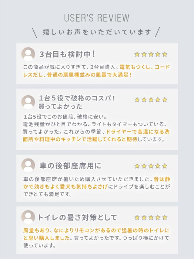 - 発送が速かったです。ネックアイスのプレゼントもあり、ありがとうございます。扇風機は、使い勝手があり、購入してよかったです。