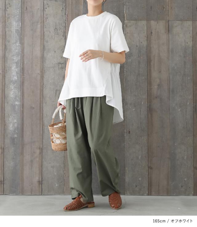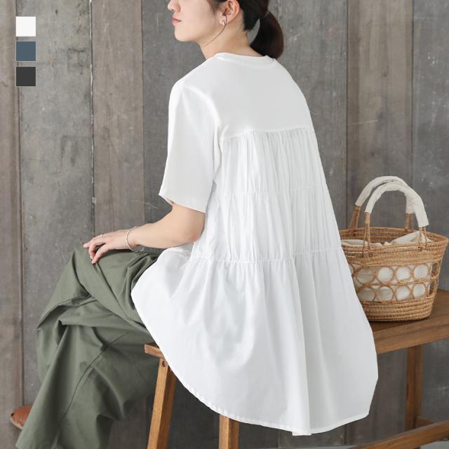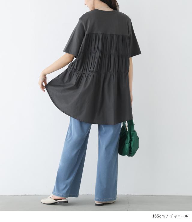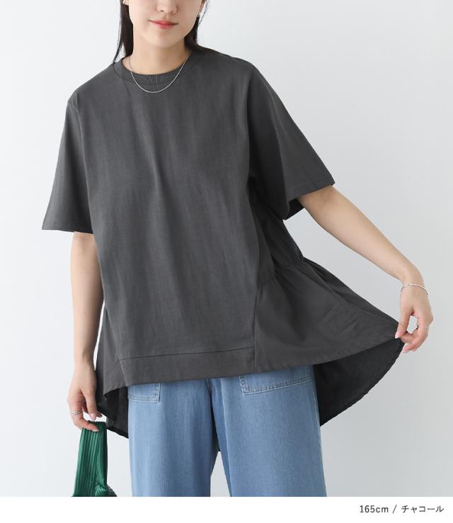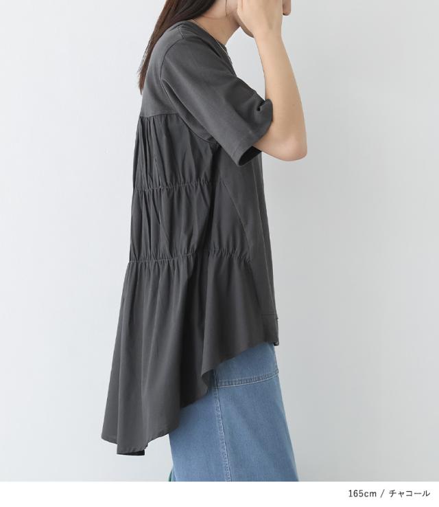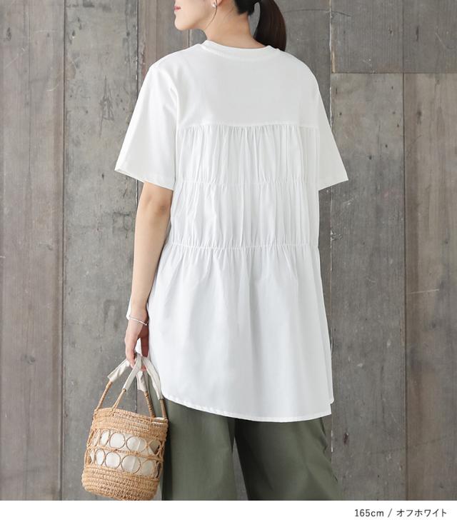 『バックティアードチュニック』※メール便可※【10】[チュニック レディース トップス 半袖 カットソー Tシャツ ティアード バックデザイン シャツ シンプル 異素材 綿混 着回し 春 夏]