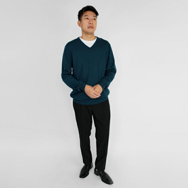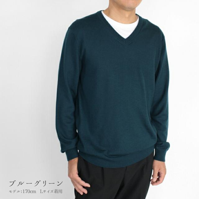 PRODIGAL メンズ セーター vネック ウール100% 日本製 M L 秋 冬 ニット 長袖 無地 五泉ニット ウール100%メンズVネックプルオーバー