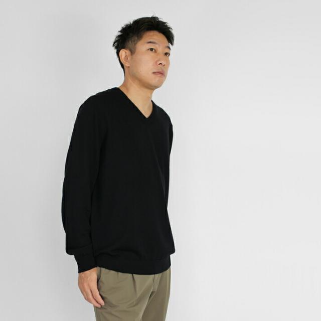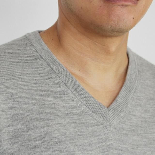 やわらかく肌触りの良いエクストラファインメリノウールを使ったVネックセーターです。