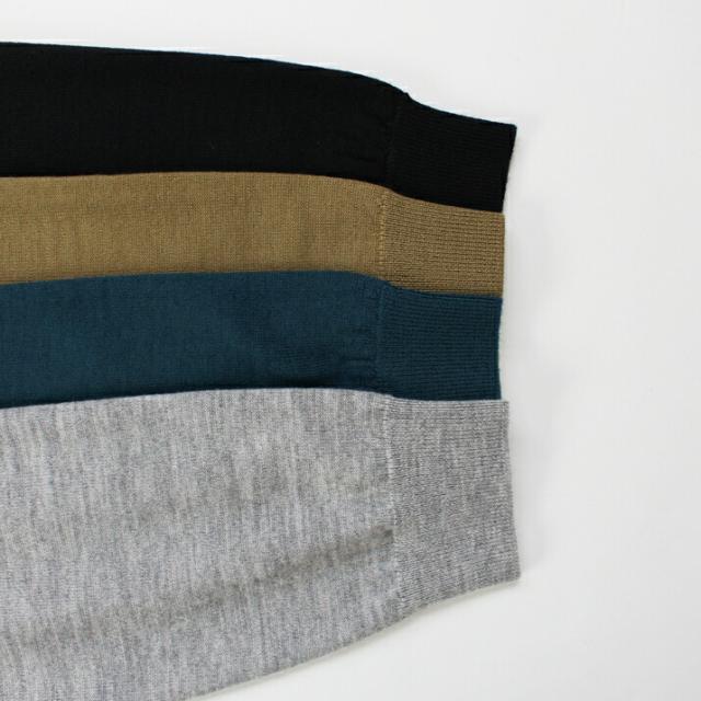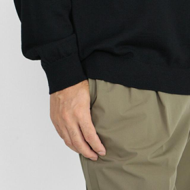 繊維が細く毛羽立ちが少ない為、ウール特有のチクチク感がほとんど無いなめらかな肌触り。上質な素材感とウールならではの保温性や風合いを兼ね備えた、着心地の良い1枚です。