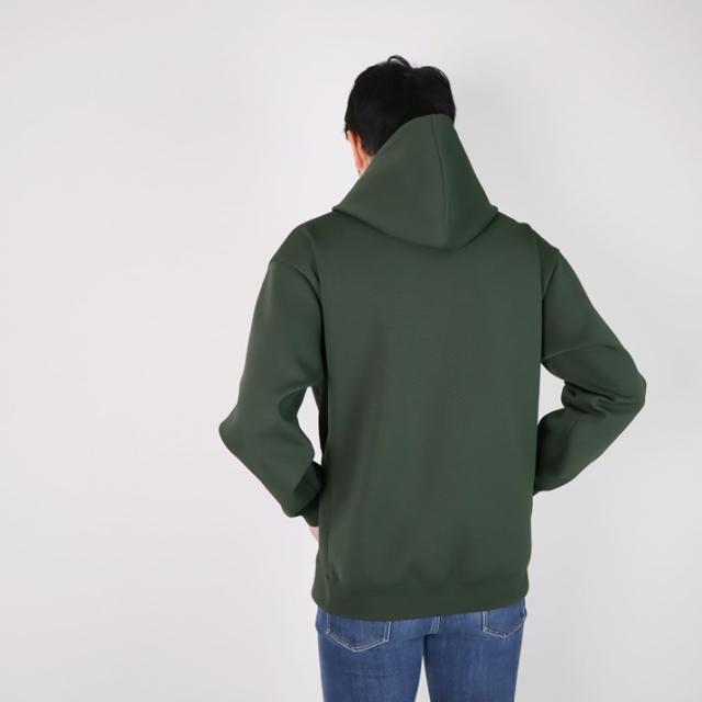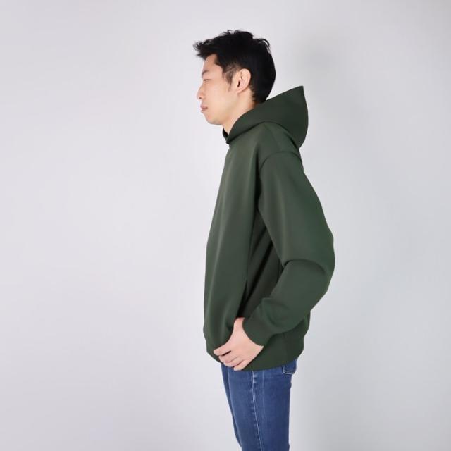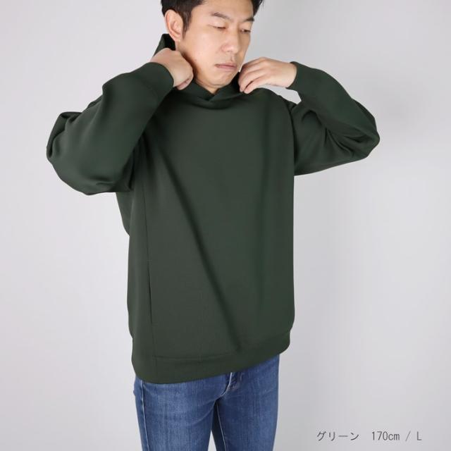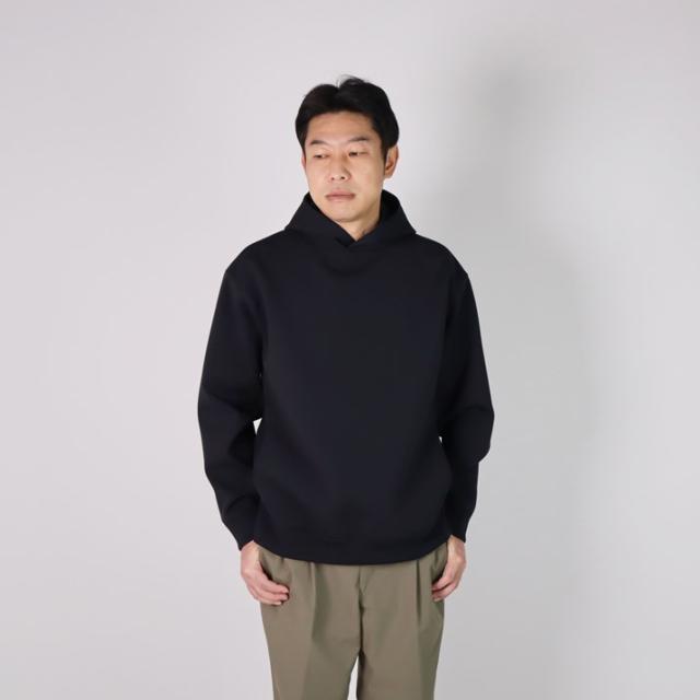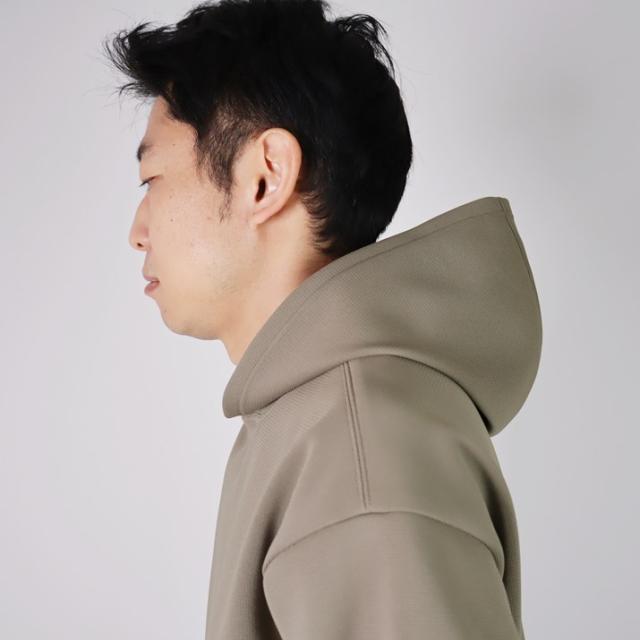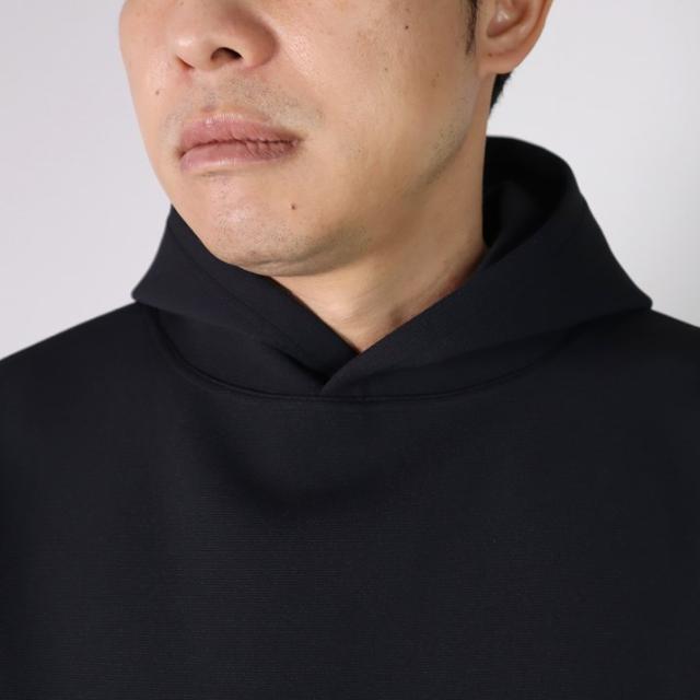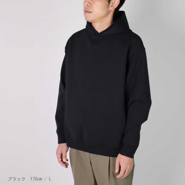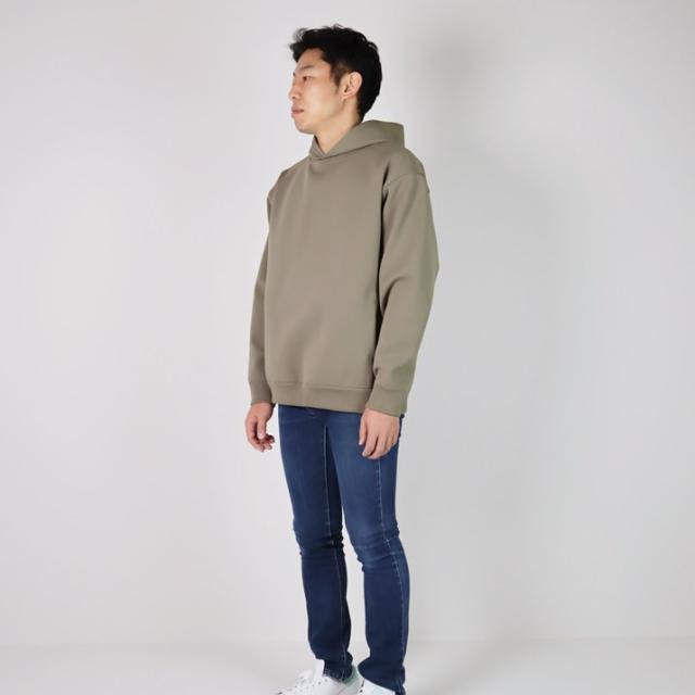ハリの出る素材と編み方で、より立体的に仕上げました。毛羽立ちがなく、ソフトな風合いでスウェットパーカーのような感覚でご着用いただけます。