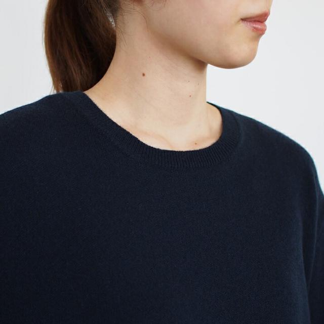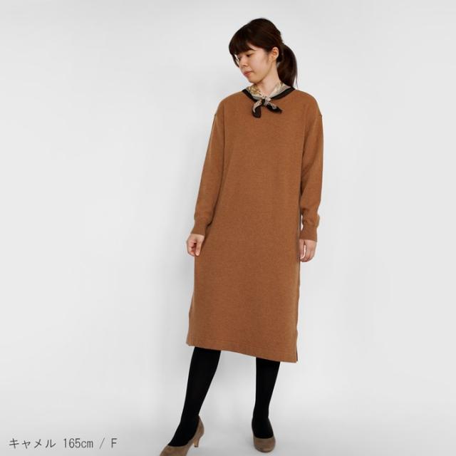 カシミヤ100%素材を使用した、軽くてあったかいクルーネックのワンピースです。