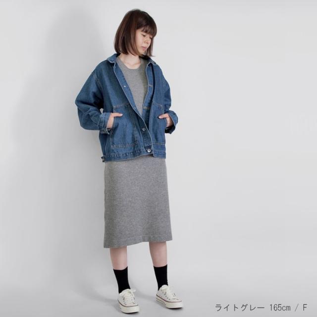このワンピースはフロート編みという編み方を採用しています。天竺編みのセーターと比べると厚みがあり、しっかり目の仕上がりなので着用時のラインがきれいです。