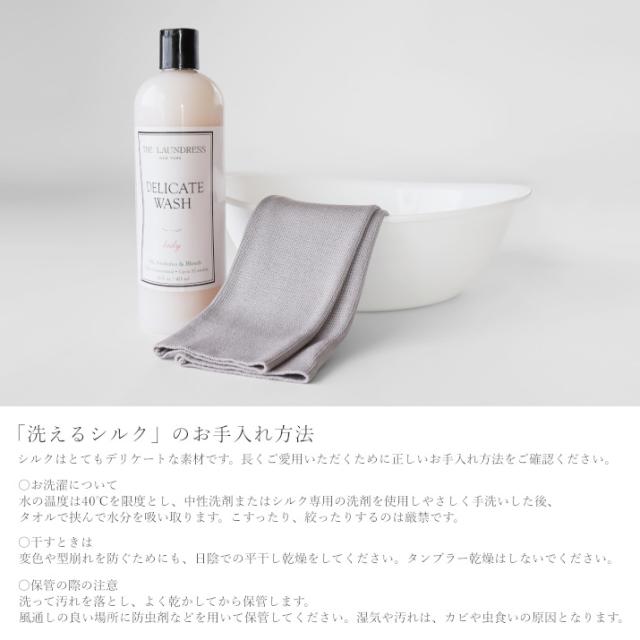 洗濯による劣化を防ぐために糸の表面に特殊な加工がされているシルク素材を使用しています。 ![]() ![]()