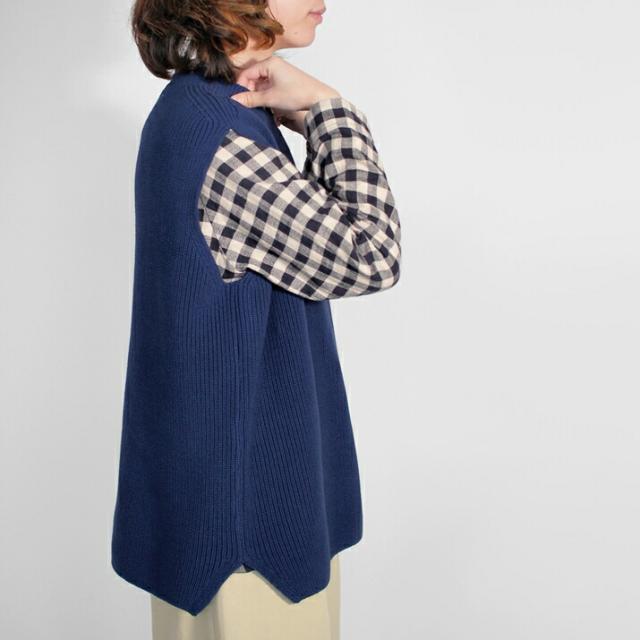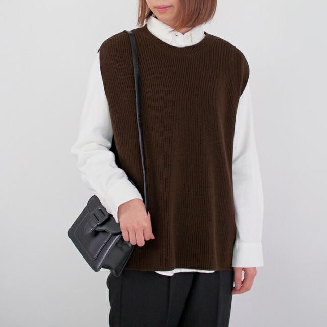 ふっくらとしたソフトな風合いが特徴の綿アクリル素材のニットベストです。バルキー糸を使用することでゆったりボリュームのあるシルエットながら軽い着心地に。