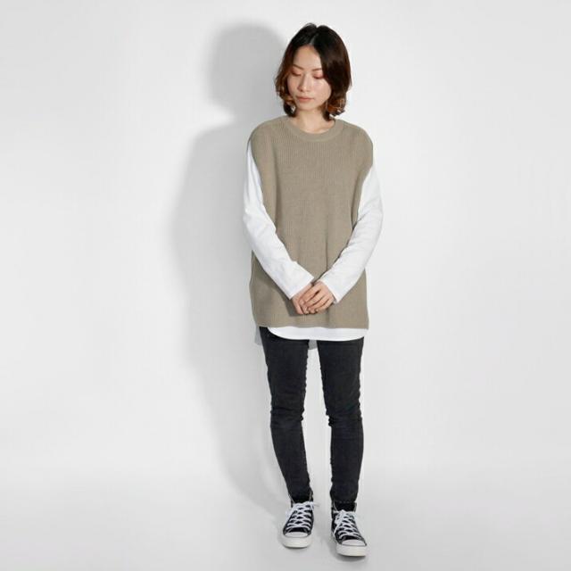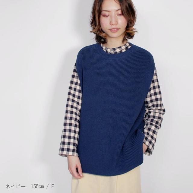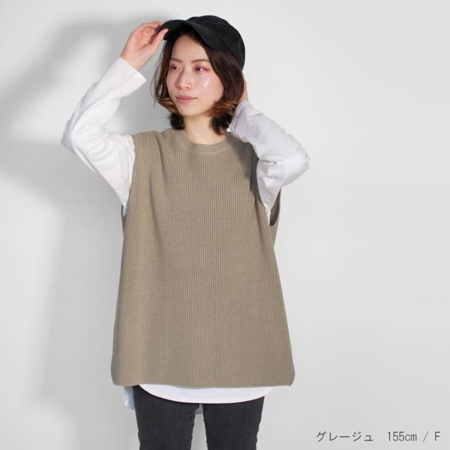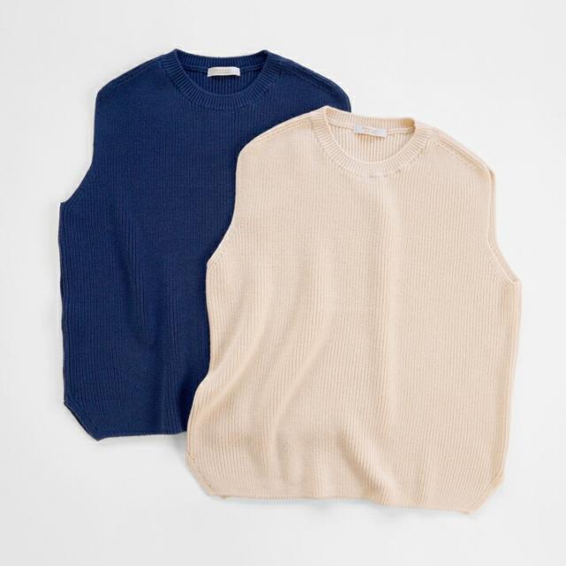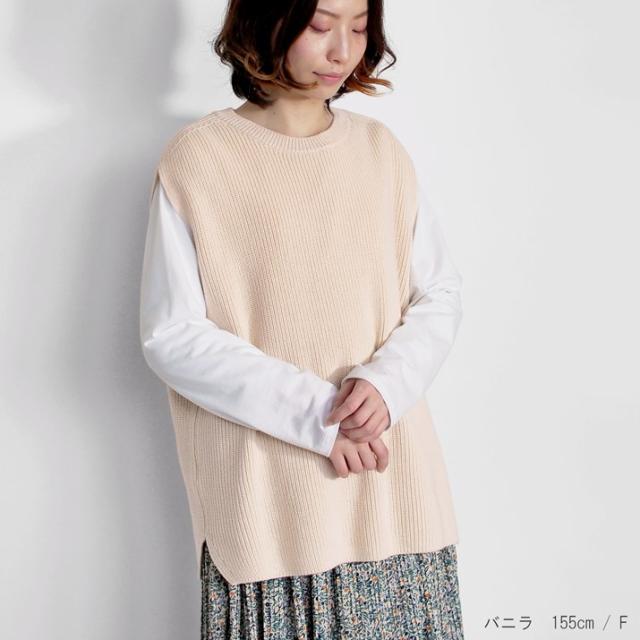 プロディガル ベスト ニット ノースリーブ ラウンドネック 綿 ゆったり 重ね着 レイヤード トップス 春 春夏