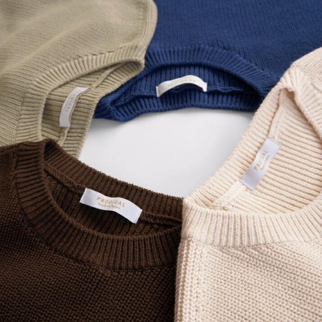 PRODIGAL 高品質 国産 プルオーバー 成型編み 畦編み スリット コットンアクリル 綿アクリル オーバーサイズ ボリューム カジュアル ベーシック レイヤード 春物 春服 重ね着 かわいい 可愛い おしゃれ お洒落 春夏 秋冬