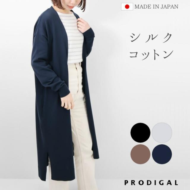 PRODIGAL 洗える カーディガン ニット 日本製 レディース フリーサイズ 春 夏 長袖 薄手 UVカット シンプル 無地 五泉ニット シルクコットンロングカーディガン