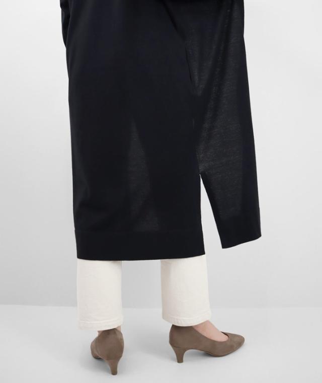 しなやかで優しい光沢感をまとう、きれいめな印象に仕上がりました。シンプルで洗練されたデザインだから、流行に左右されず長く着ていただけます。
