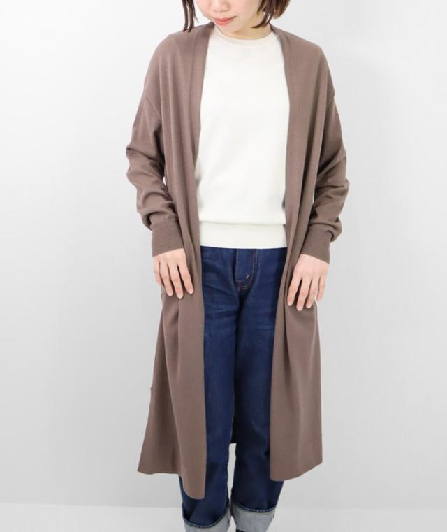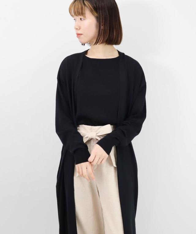 編地は16ゲージの天竺編みを採用しています。しなやかで細かく均一な編み目で、一目見るだけで上質感が伝わる仕上がりに。薄手でやや透け感があります。
