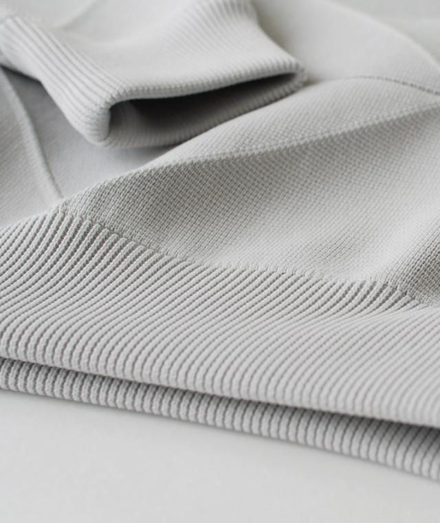 ボリュームがありながらも軽くてあたたかい中厚手のポリエステルニットはロングシーズン活躍してくれます。毛玉になりにくく、速乾性にも優れているのでデイリー使いにぴったりです。
