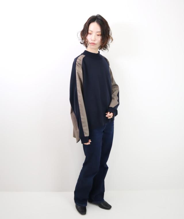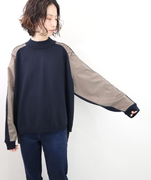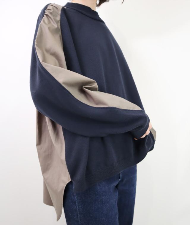 ・ウール100%の繊維が細く毛羽立ちが少ないニットに布帛をドッキングしたプルオーバー