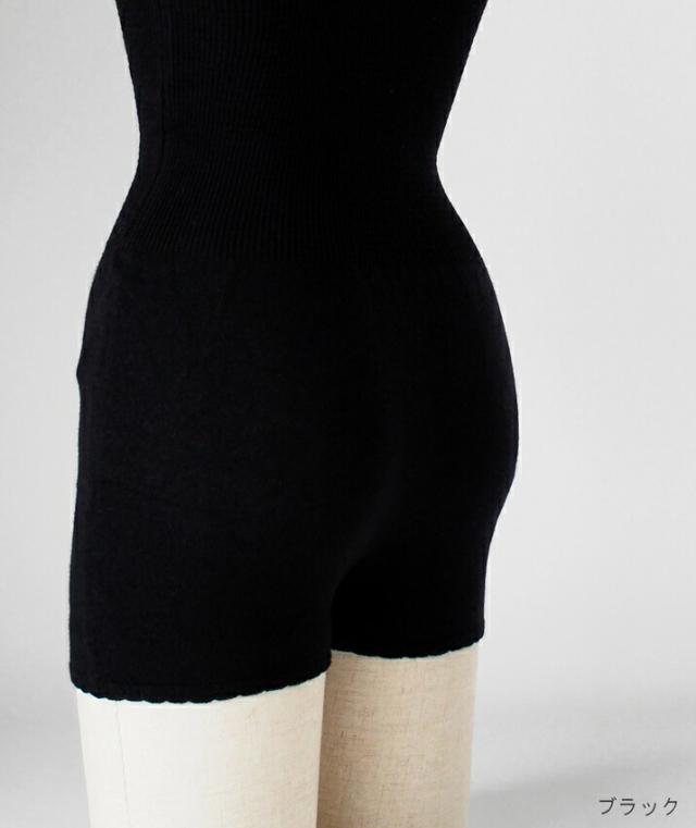 バスト下からウエスト周まではゴム糸を一緒に編むことによって、ぴったりとフィットする形となっています。普段使いでずり落ちにくい着用感を実現しました。