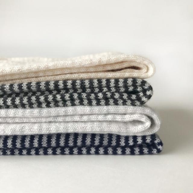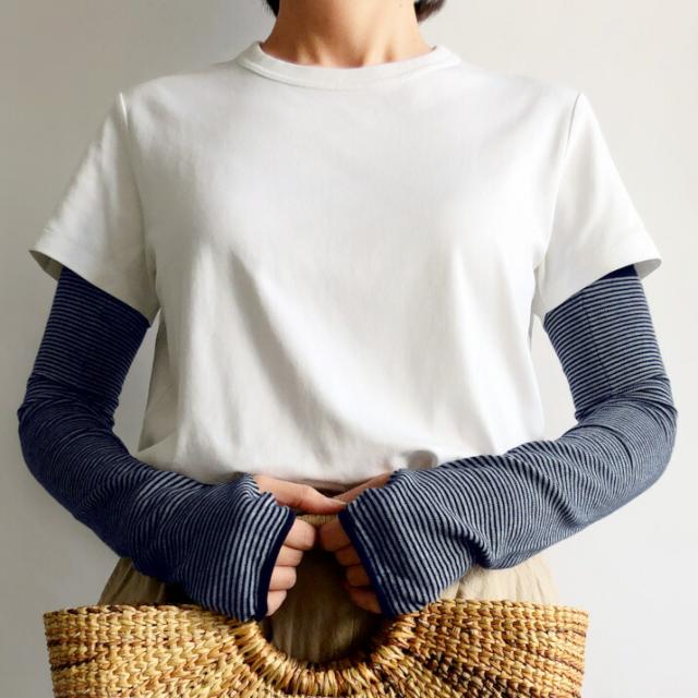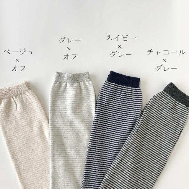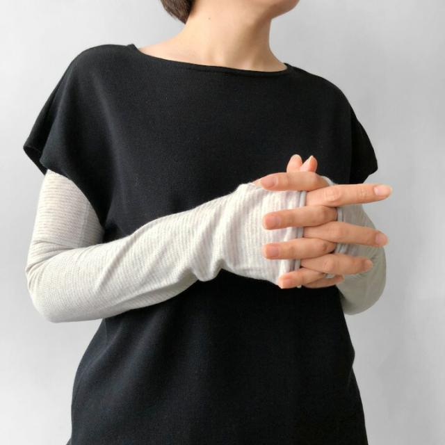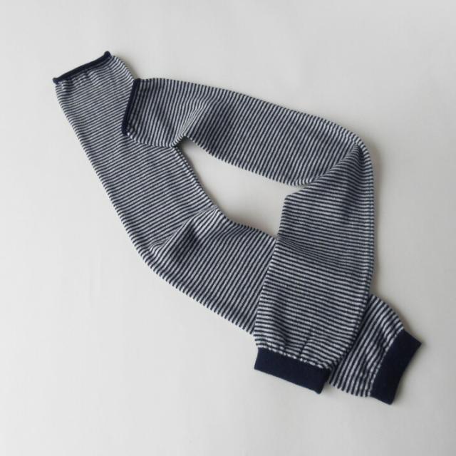 しなやかで上品なやわらかさを持つカシミヤのぬくもりと、なめらかな肌触りが自慢の超長綿の快適さ。天然繊維のメリットをあわせ持ったボーダー柄のアームカバーです。