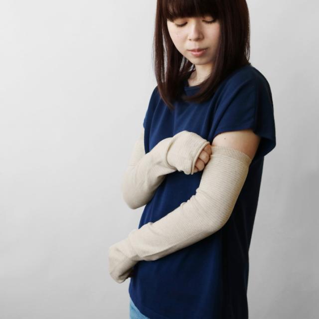 ![]() モデル160cm / ネイビー×グレー着用 ![]() ふんわりやさしい肌触りのアームカバー