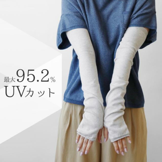 PRODIGAL コットンカシミヤ アームカバー ボーダー レディース ロング 春 夏 日本製 薄手 UVカット UVケア 日焼け対策 紫外線対策 自転車 可愛い おしゃれ 綿カシミア 冷房対策 五泉ニット