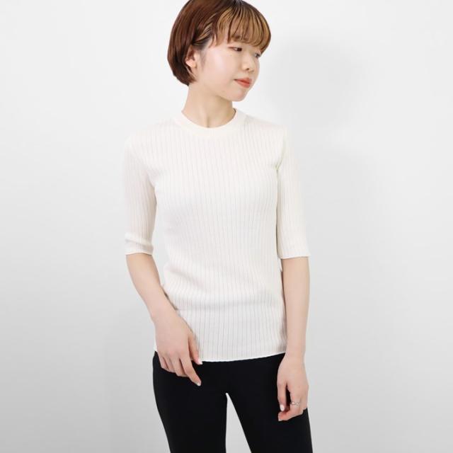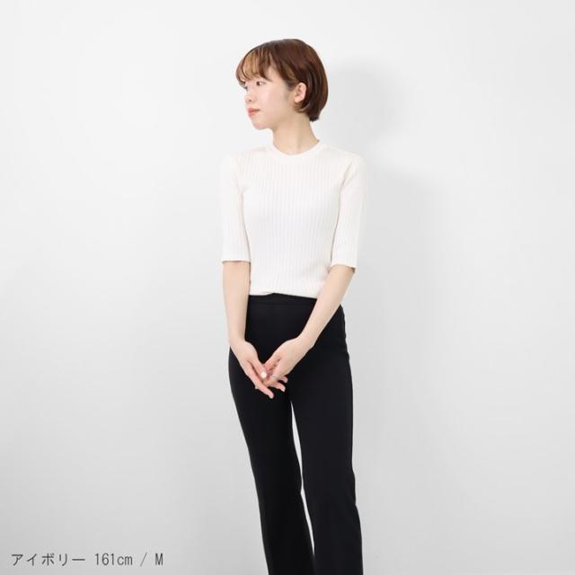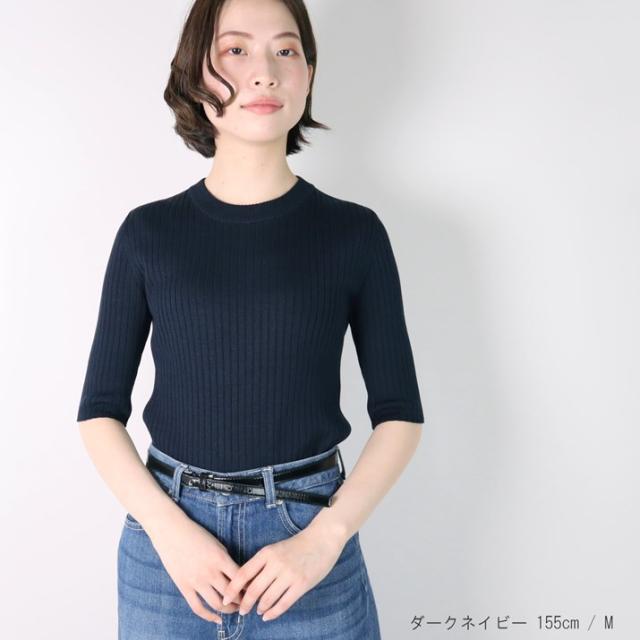 PRODIGAL 洗える シルク100% リブニット 半袖 プルオーバー 日本製 レディース M L サマーニット 春 夏 クルーネック シンプル 五泉ニット ウォッシャブルシルク100%リブプルオーバー