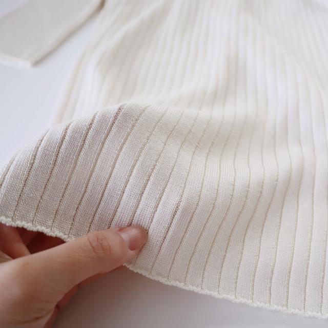 なめらかで光沢があり、しっとりとした肌触りのシルク100%のリブプルオーバーです。糸に特別な加工を施し、ご自宅でのお洗濯を可能にしました。 ![]() ![]() ![]() 洗濯による劣化を防ぐために糸の表面に特殊な加工がされているシルク素材を使用しています。