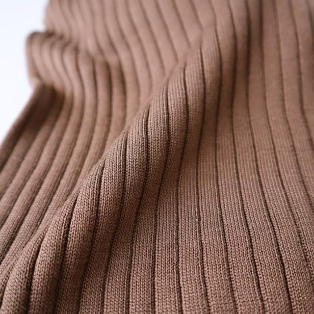 編地は14ゲージのリブ編みを採用しています。糸を2本取りで使用することにより編地の厚みが増し、シルクの光沢感がより一層際立ちます。 ![]() ![]() ![]() ![]() ![]() ![]() 上品な光沢でワンランク上の着こなしに シルクならではの上品な光沢感と滑らかな肌触りが魅力のリブニット。シンプルで洗練されたデザインなので、流行に左右されず長く着られること間違いなし。 ![]() ![]() ![]()