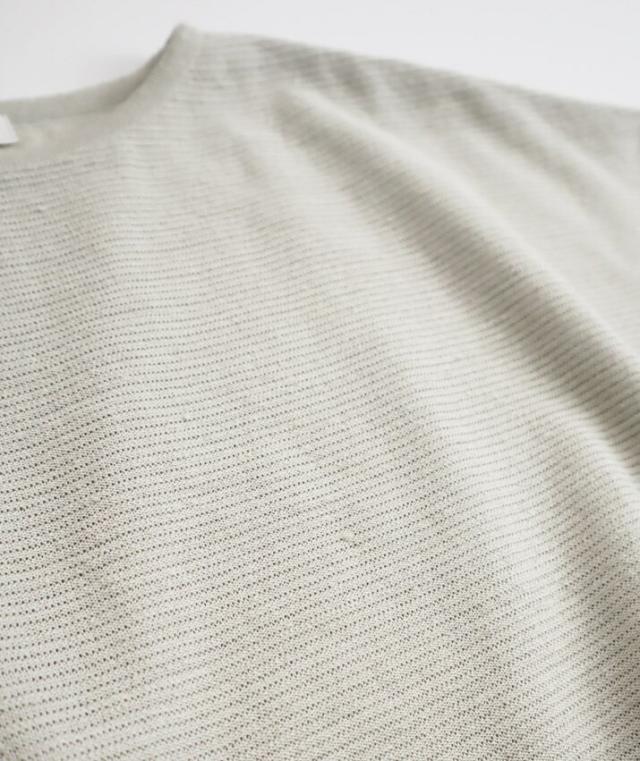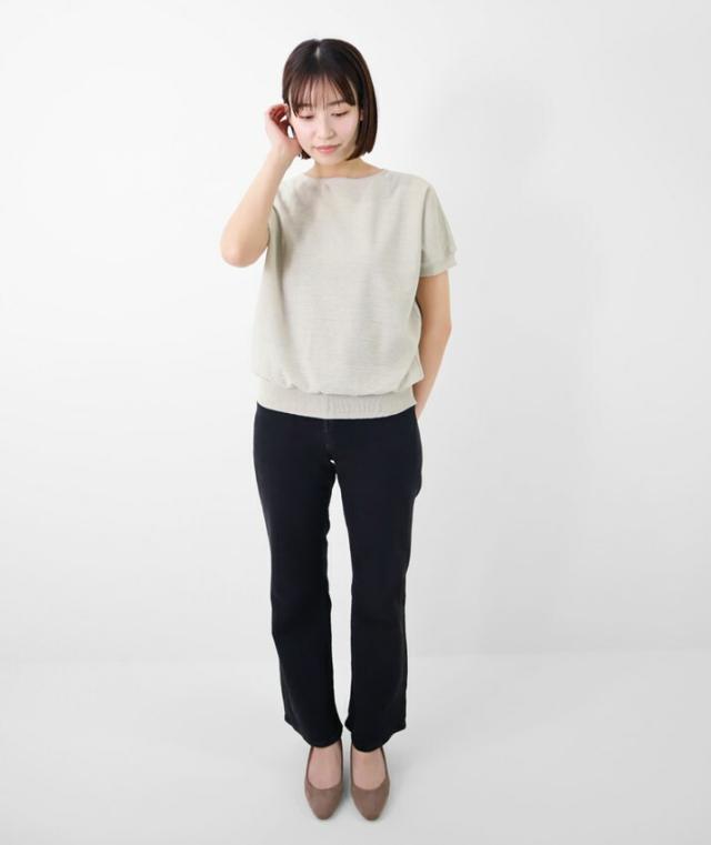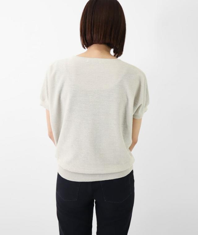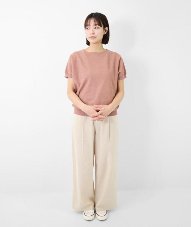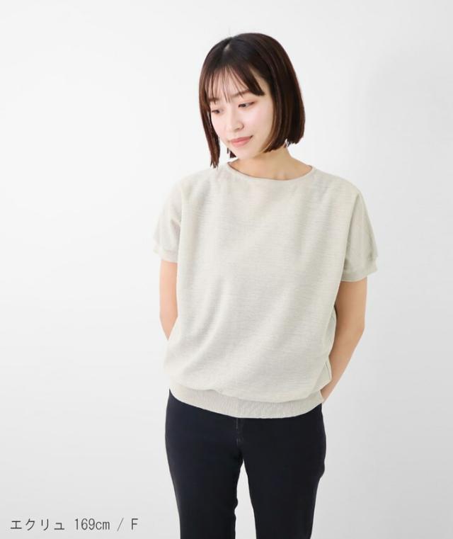 ![]() さらっとリネンの涼しげなプルオーバー 夏らしいリネン混素材で作った、サマーニットのプルオーバーです。シャリ感のある素材と程よい透け感が涼しげで、暑い夏でも爽やかに着ていただけます。 ![]() ![]() ![]() 編地は14ゲージのガーター編みを採用しています。凹凸のある編地で肌に触れる部分が少ないため体にはり付きにくく、さらりと快適な着心地です。 ![]() ![]() ![]() 合わせるものを選ばないデイリーニット 程よくハリがあり、体のラインを拾わないゆるやかなシルエット感でリラックスして着ていただけます。編み柄でつくるさりげないシャドーボーダー柄がコーディネートのアクセントになります。 ![]() ![]() ![]() 肩から二の腕のラインがきれいに見えるフレンチスリーブで、女性らしく上品な印象に。開きすぎない、浅めのボートネックがデコルテをすっきり見せてくれます。 ![]() ![]()