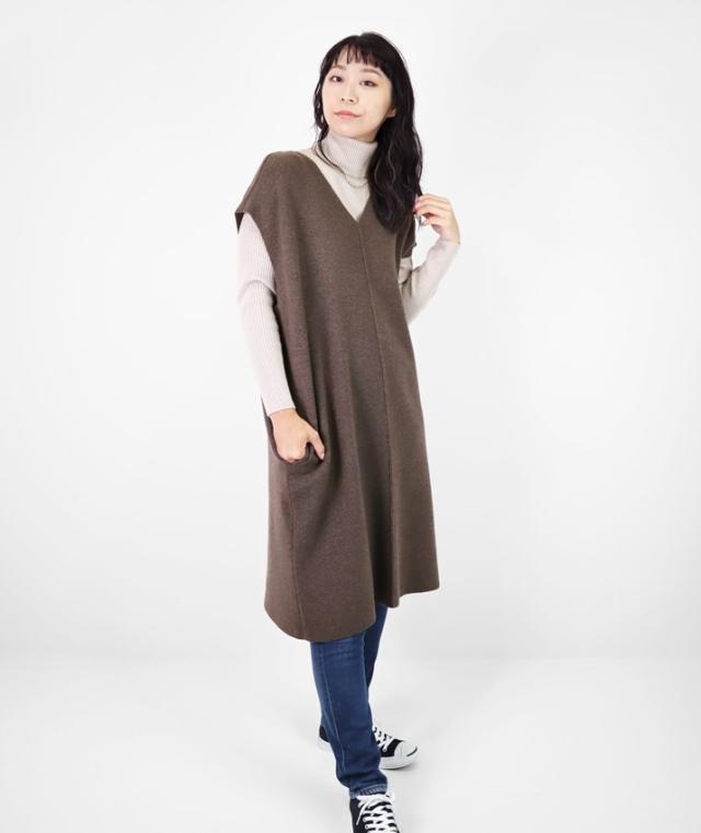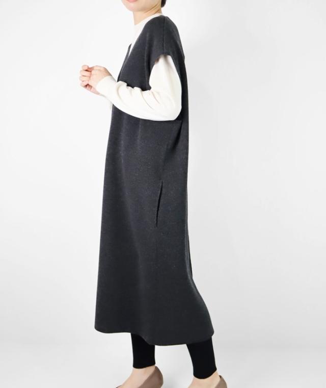 国産 高品質 品質検査済 送料無料 五泉 ニット ニットワンピ ワンピ ジレ ノースリーブ あたたかい ゆったり オーバーサイズ 重ね着 レイヤード 体型カバー カジュアル きれいめ ベーシック かわいい 可愛い おしゃれ お洒落 秋冬ファッション 秋冬アイテム 秋冬物 冬物 冬服