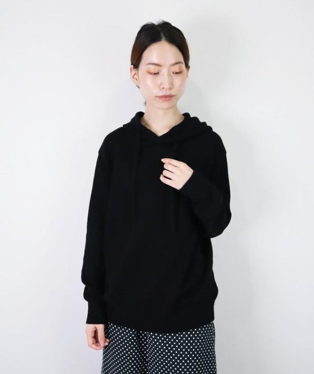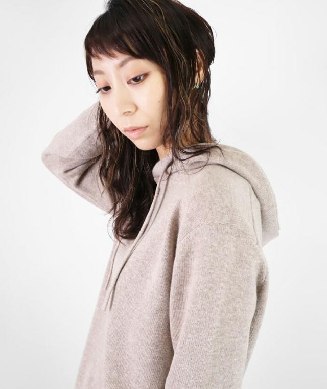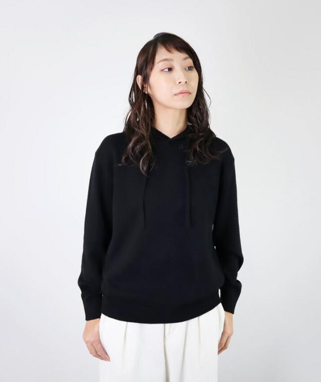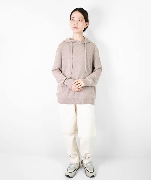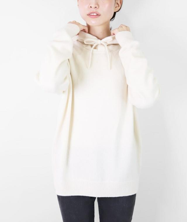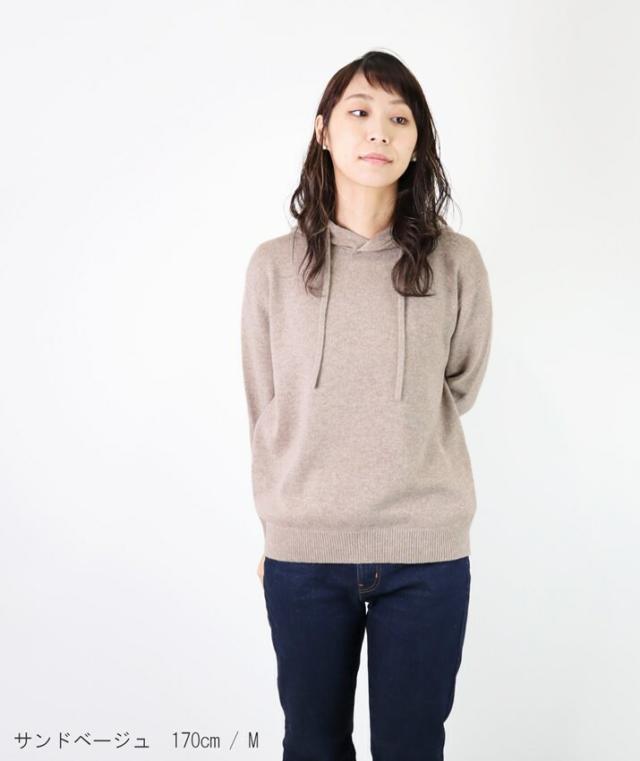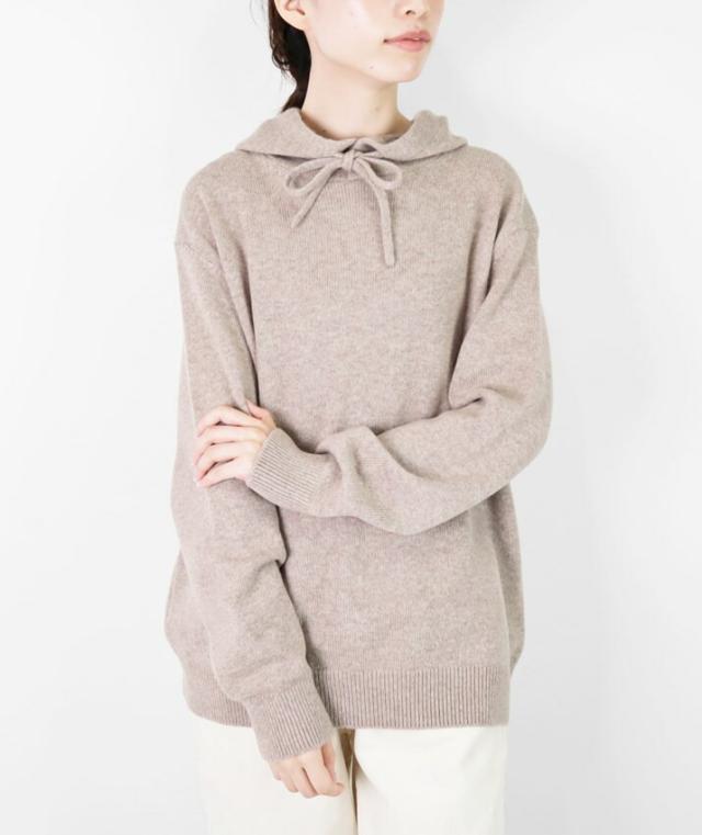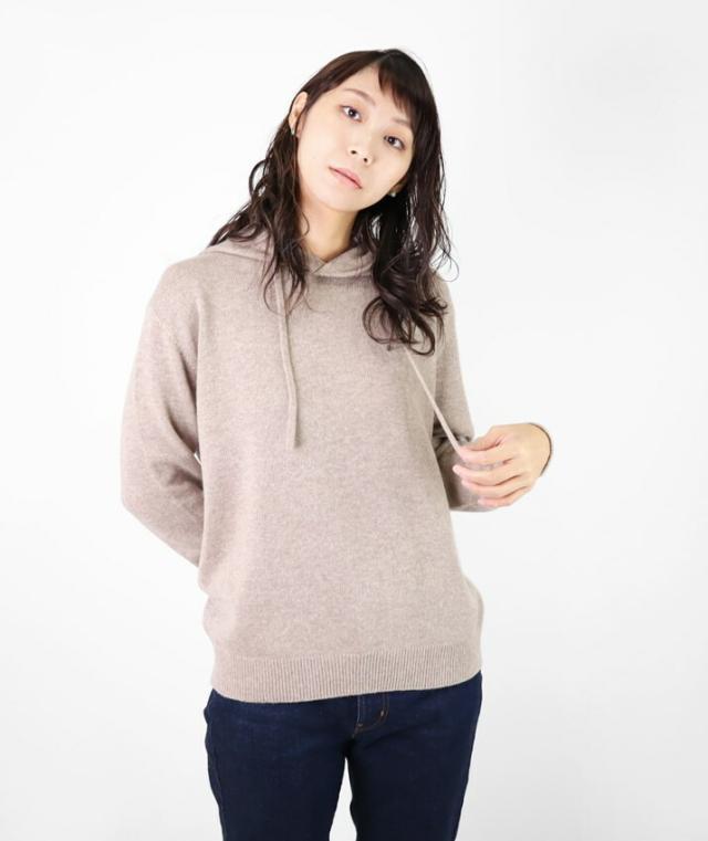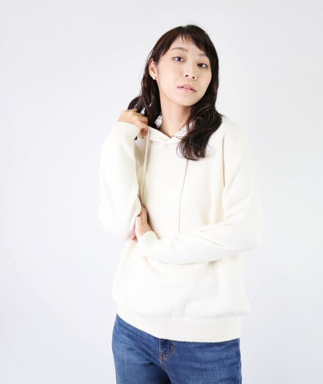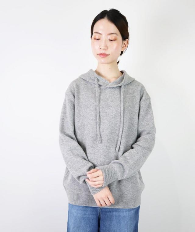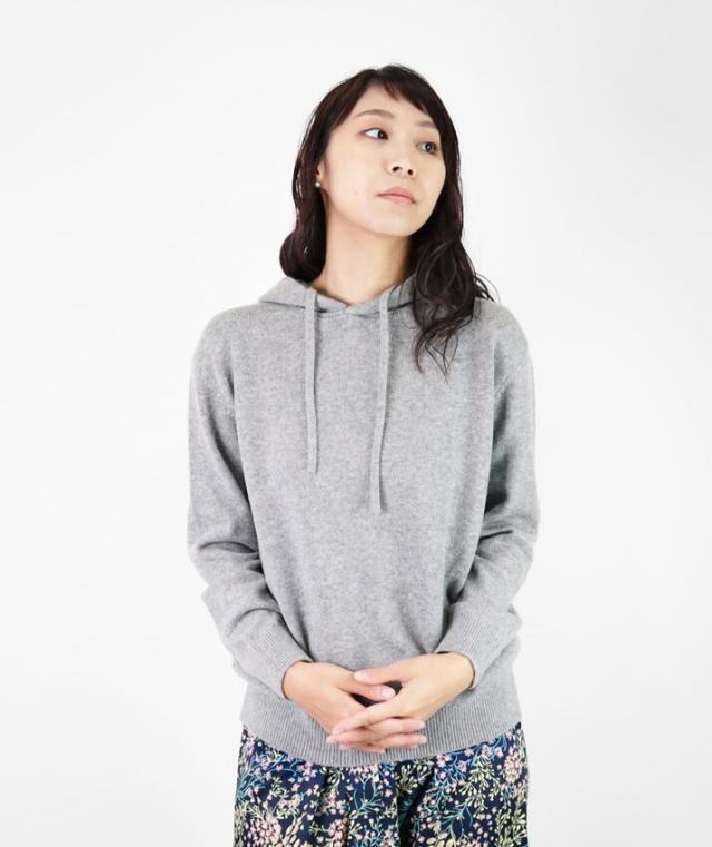 カシミヤ100%素材を使用した、軽くてあったかいフード付きのプルオーバーです。
