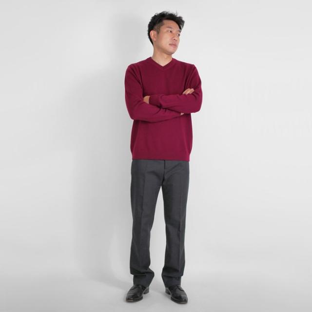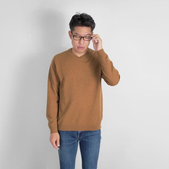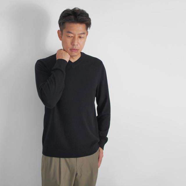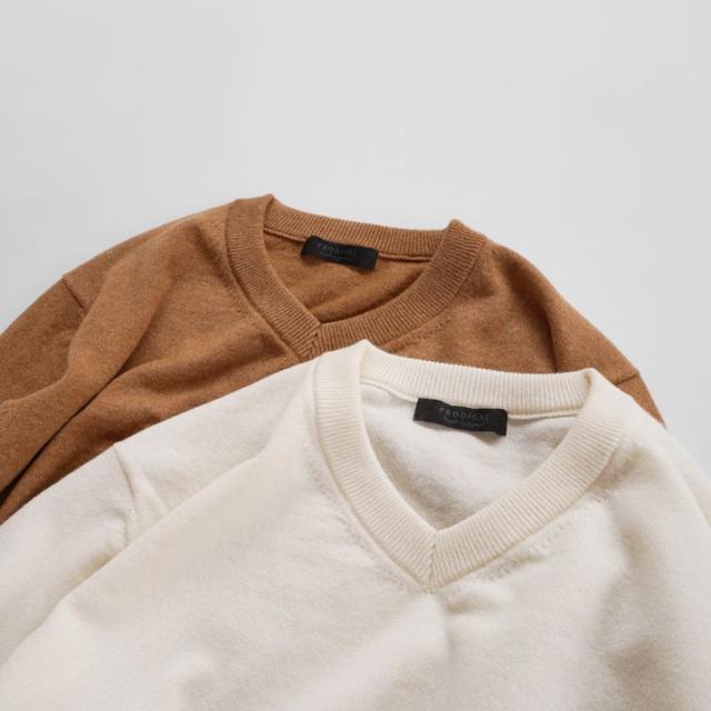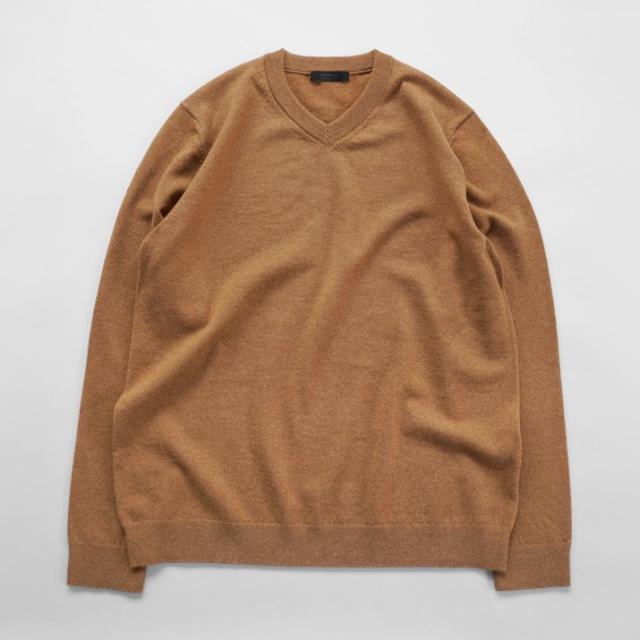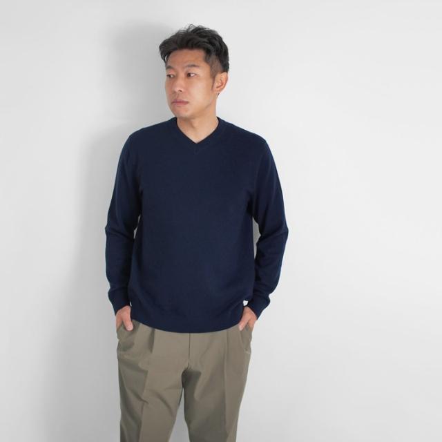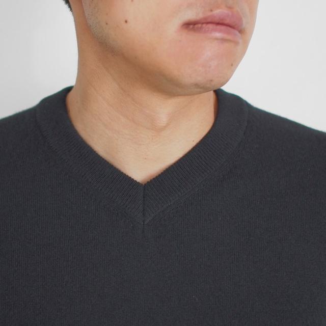 カシミヤ100%素材を使用した、軽くてあったかいVネックセーターです。