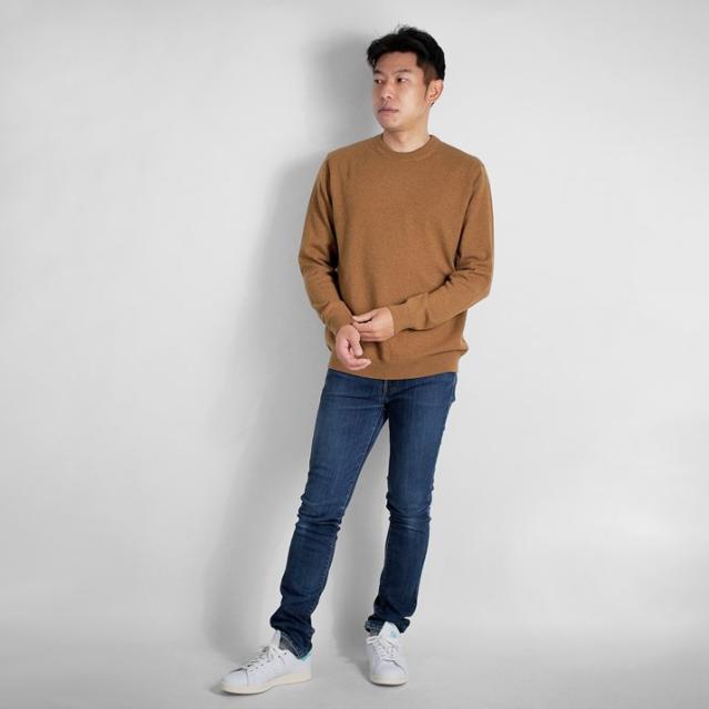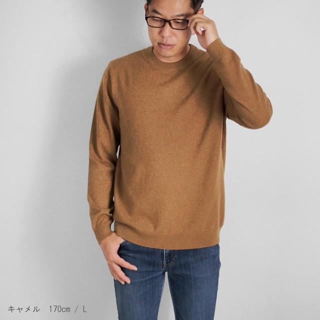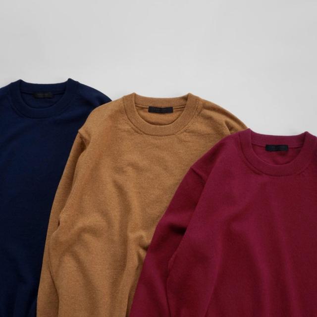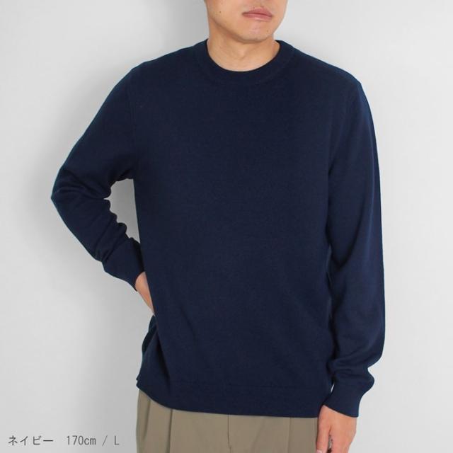 カシミヤ100%素材を使用した、軽くてあったかいクルーネックセーターです。