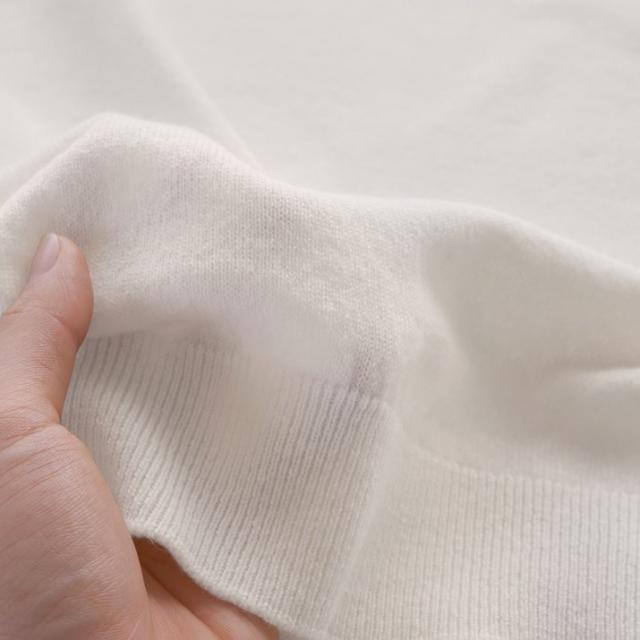 編地は12ゲージの天竺編みを採用しています。細かく均一な編み目のハイゲージニットはなめらかで、一目見るだけで上質感が伝わる仕上がりに。