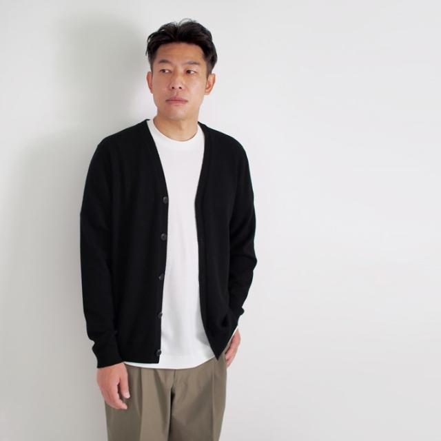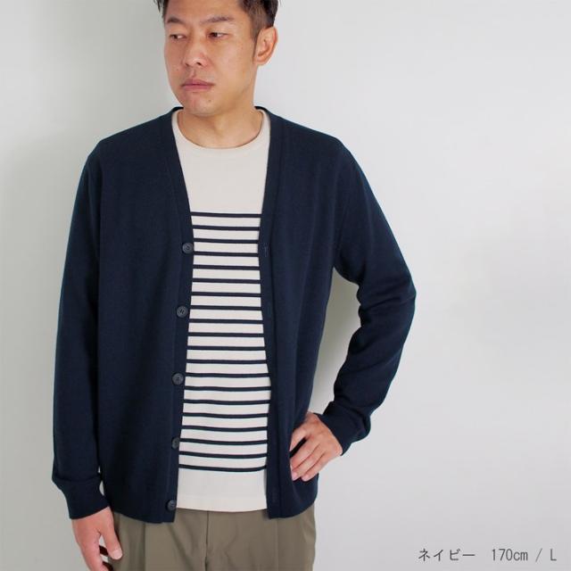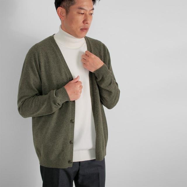 カシミヤ100%素材を使用した、軽くてあったかいVネックカーディガンです。