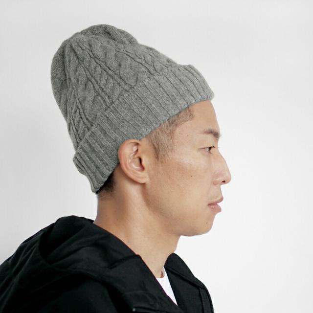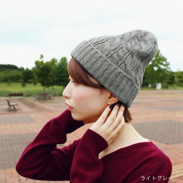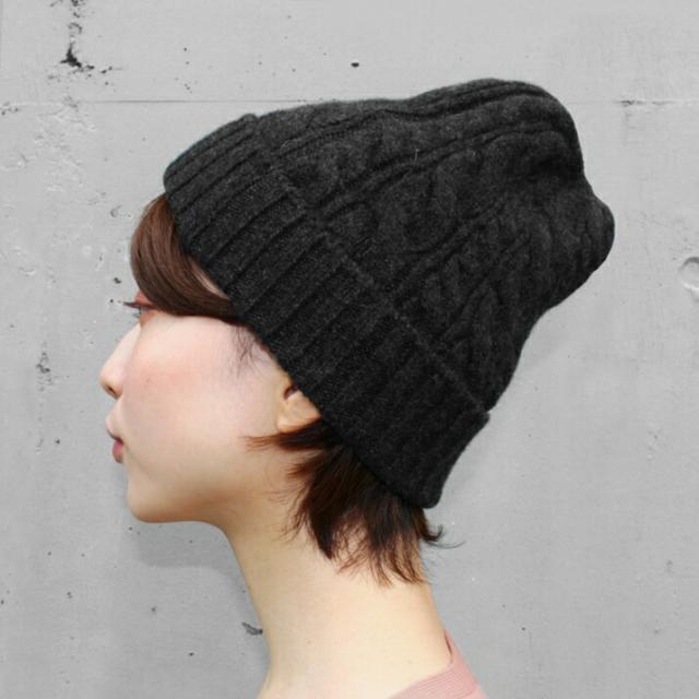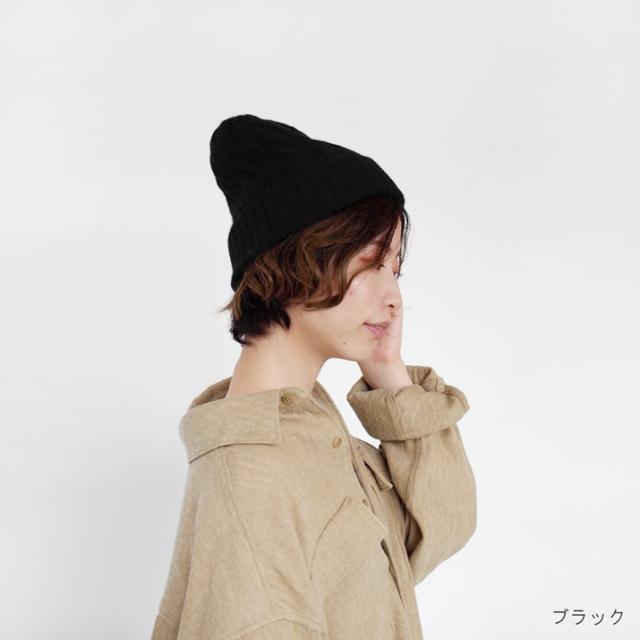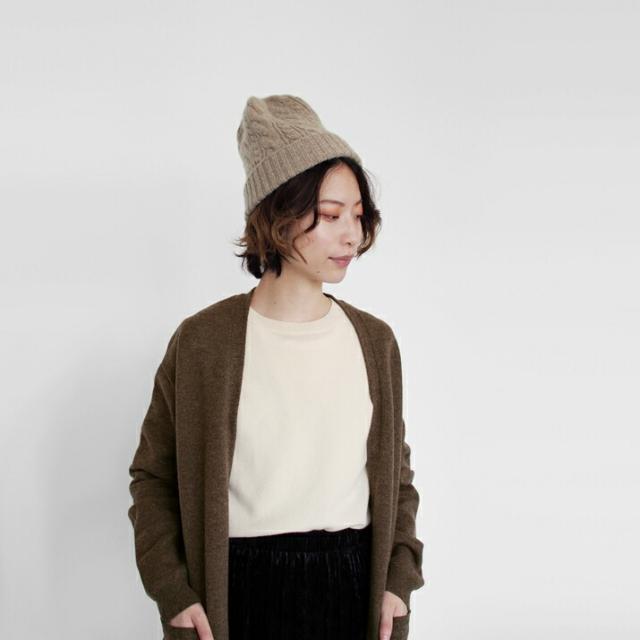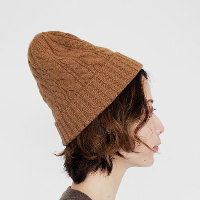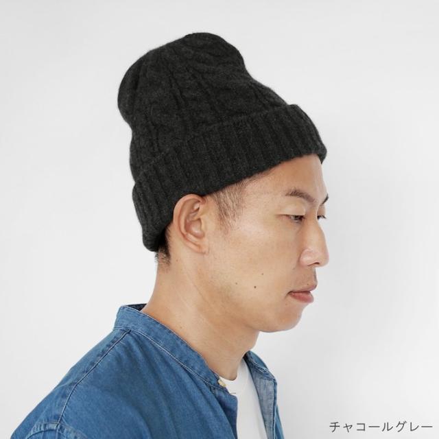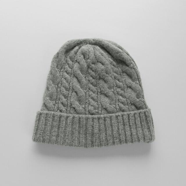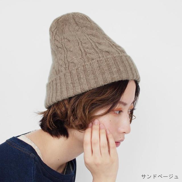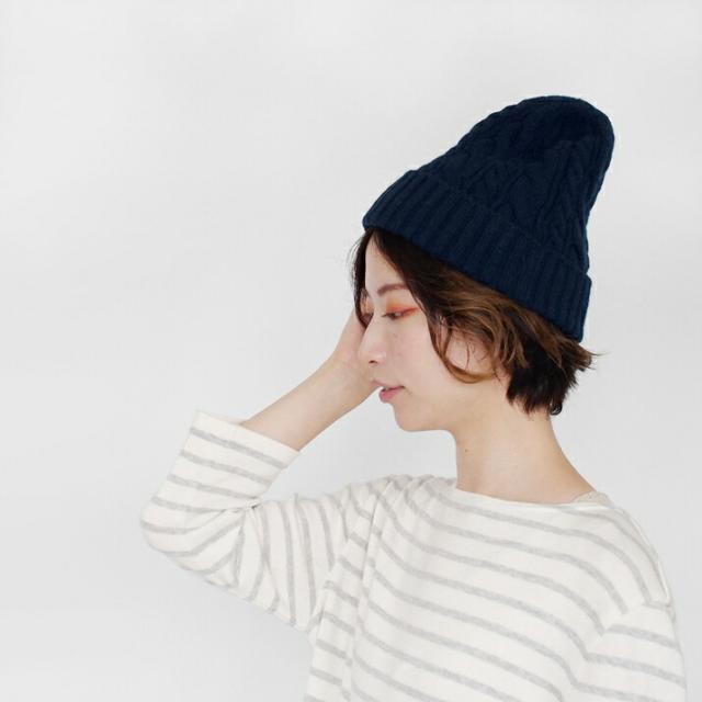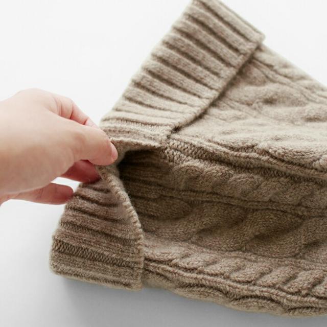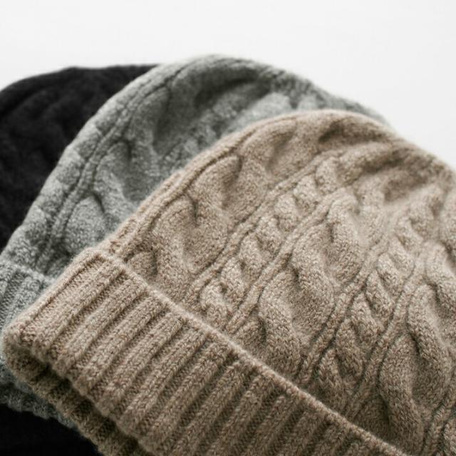 カシミヤ100%素材を使用した、軽くてあったかい太ケーブル編みニットキャップです。しっかりとした厚みとニットらしさのある立体的なケーブル柄のデザインが特徴です。
