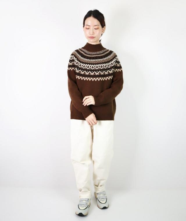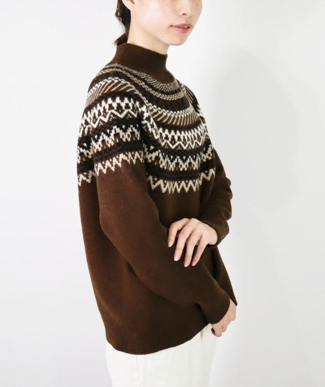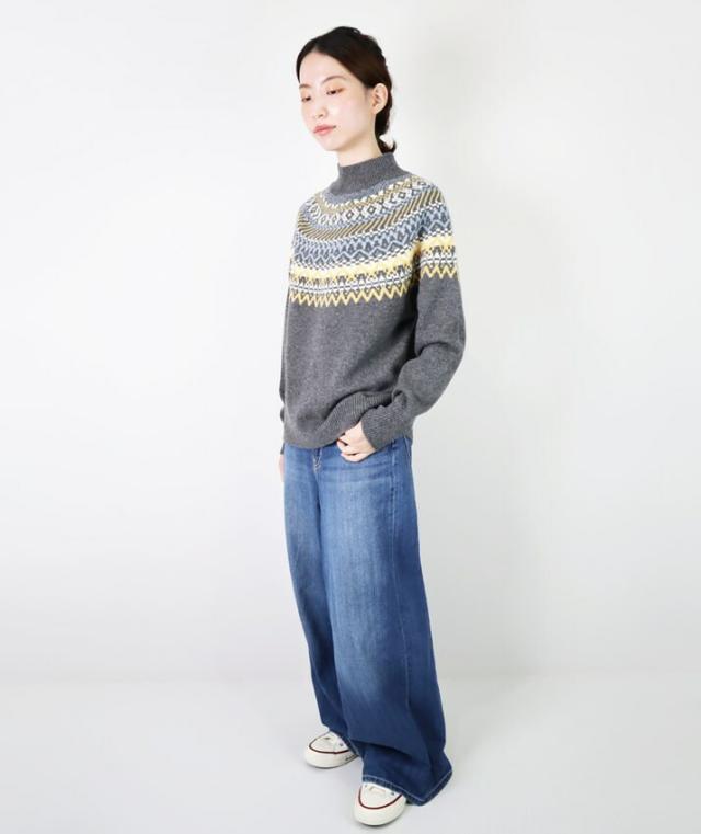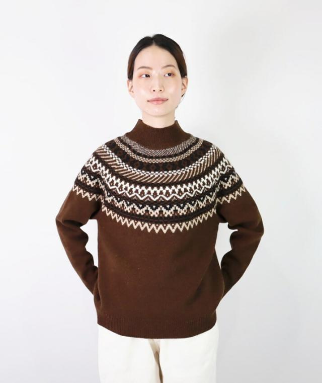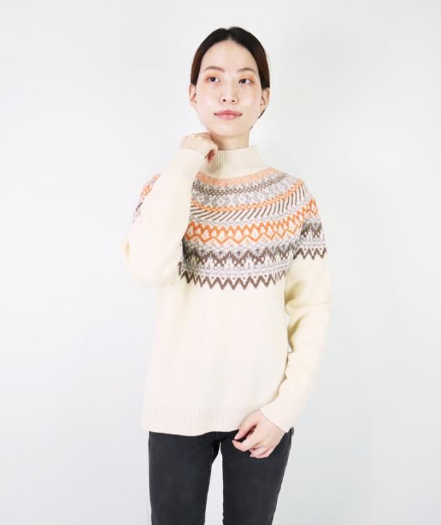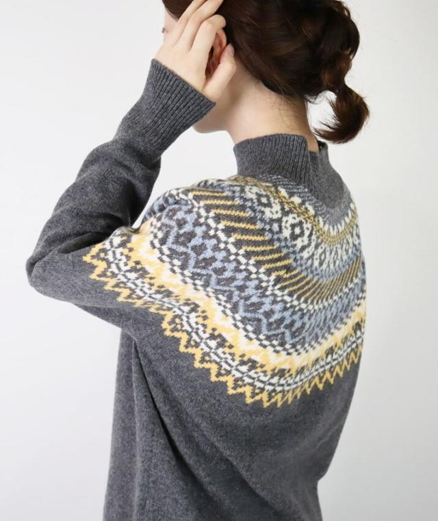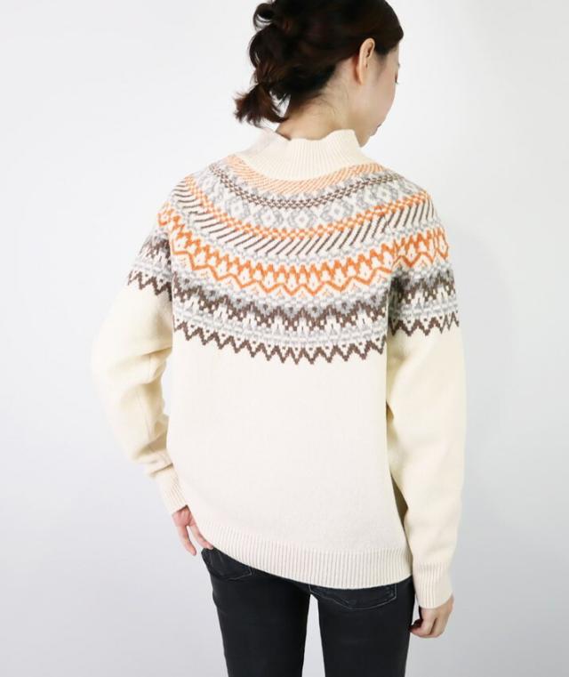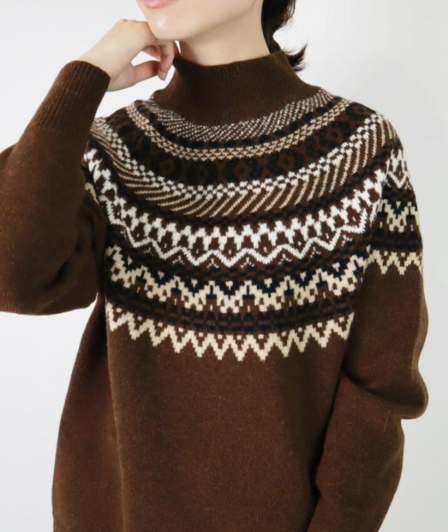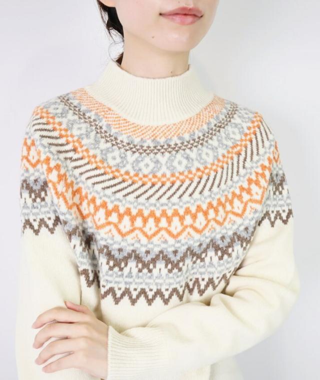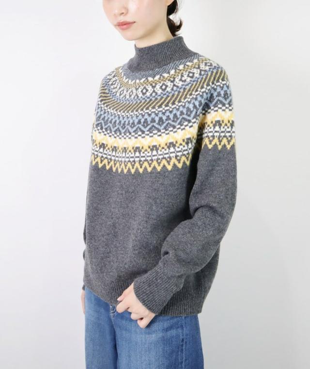 スコットランドの伝統的な古典柄、フェアアイルが魅力のハイネックセーターです。