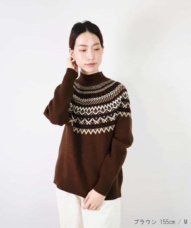 高品質 国産 送料無料 フェアアイルセーター ボトルネック タートル ハイネックセーター トップス ラグランスリーブ 幾何学模様 ノルディック レトロ 暖かい あたたかい カジュアル ナチュラル ほっこり ベーシック かわいい 可愛い おしゃれ お洒落 秋冬ファッション 秋冬アイテム 秋冬物 冬物