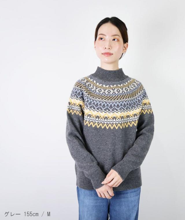 PRODIGAL フェアアイル ニット レディース プルオーバー ウール100% ジャガード 秋 冬 秋冬 日本製 M L 長袖 ハイネック ウール ミドルゲージ ざっくり フェアアイル柄ハイネックセーター