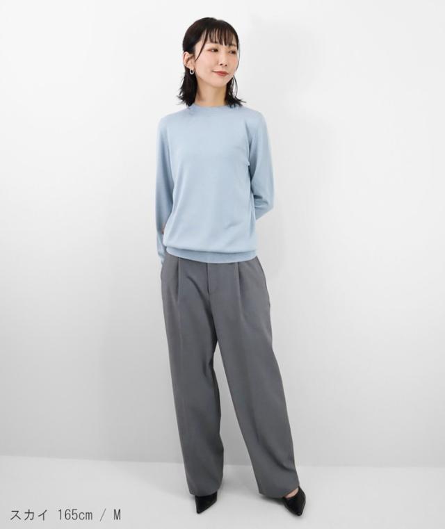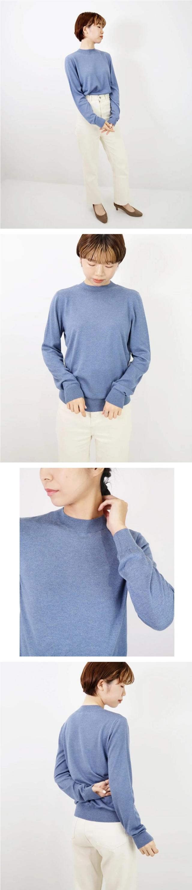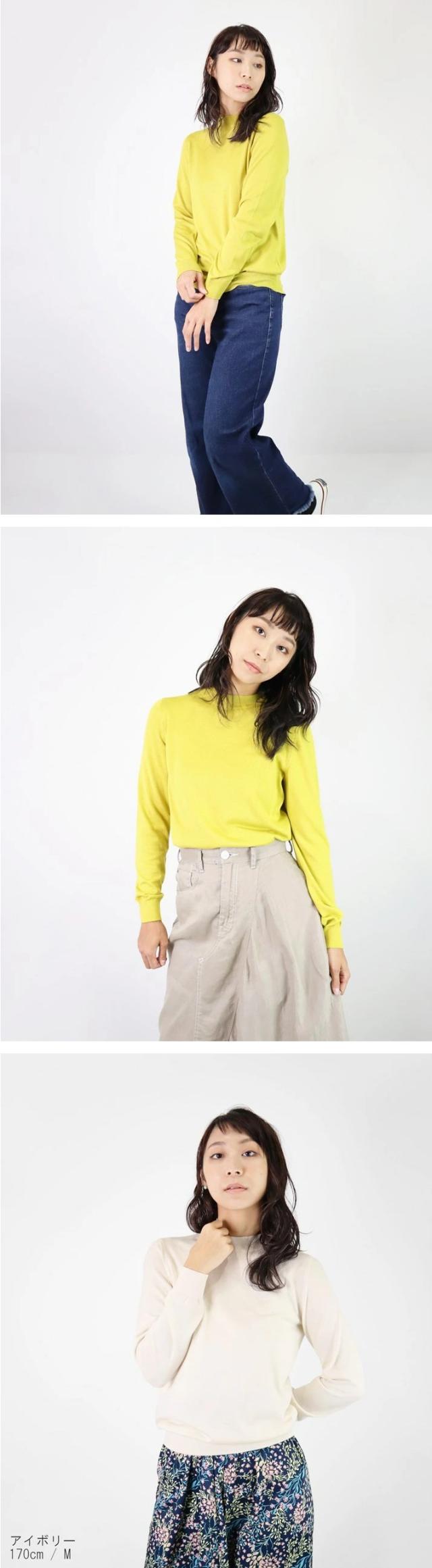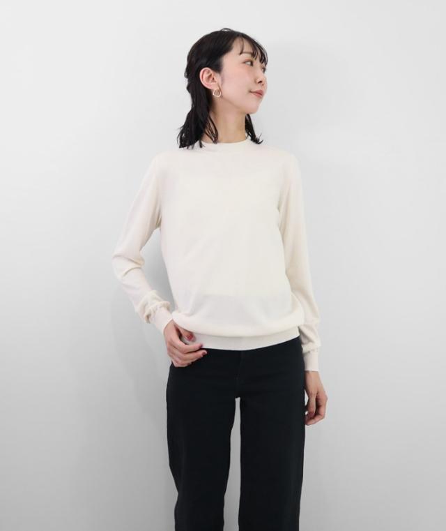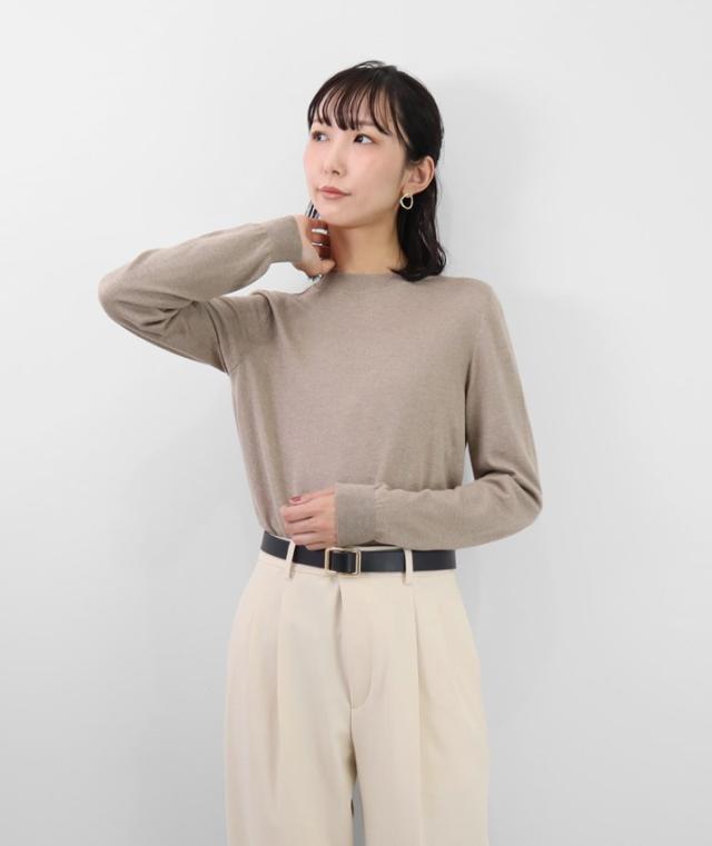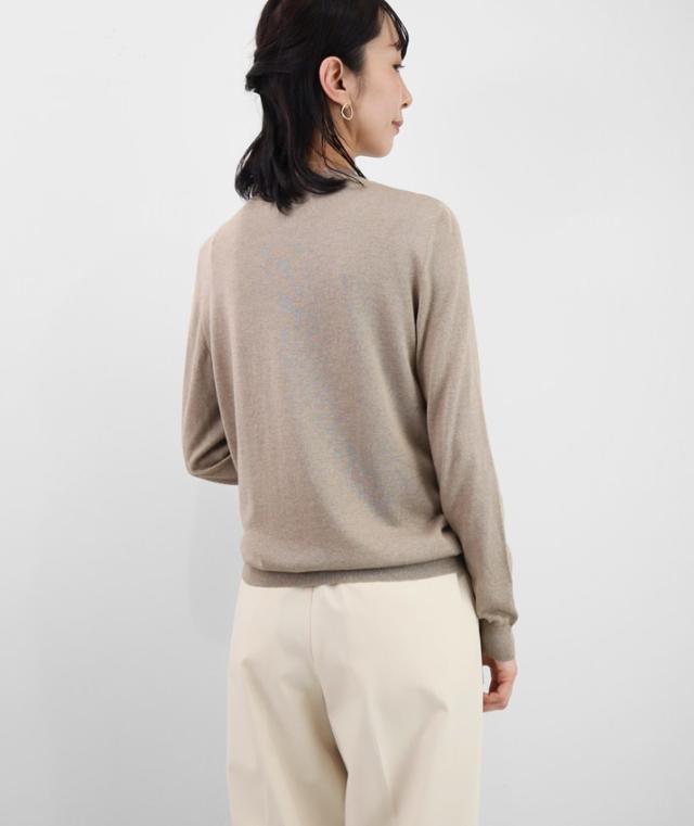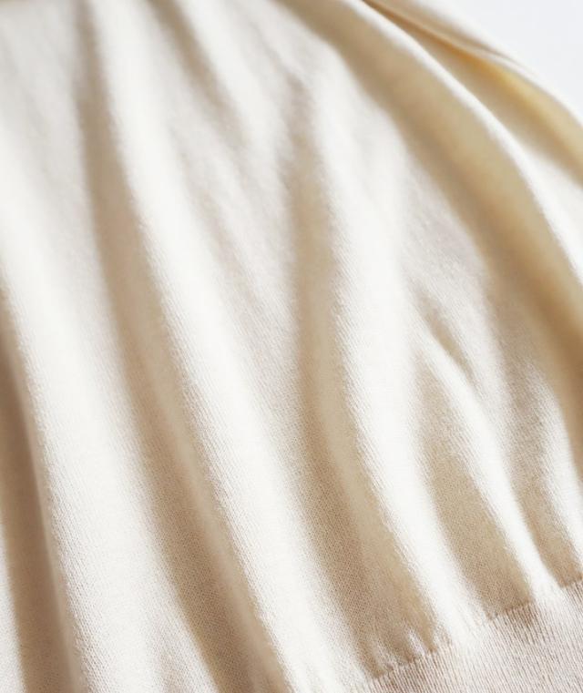 一般のシルクに比べより繊維が細くしなやかなペニーシルクと、カシミヤを合わせた糸を使用しています。保湿性と保温性に優れているので、秋から春までロングシーズン快適に着ていただけます。